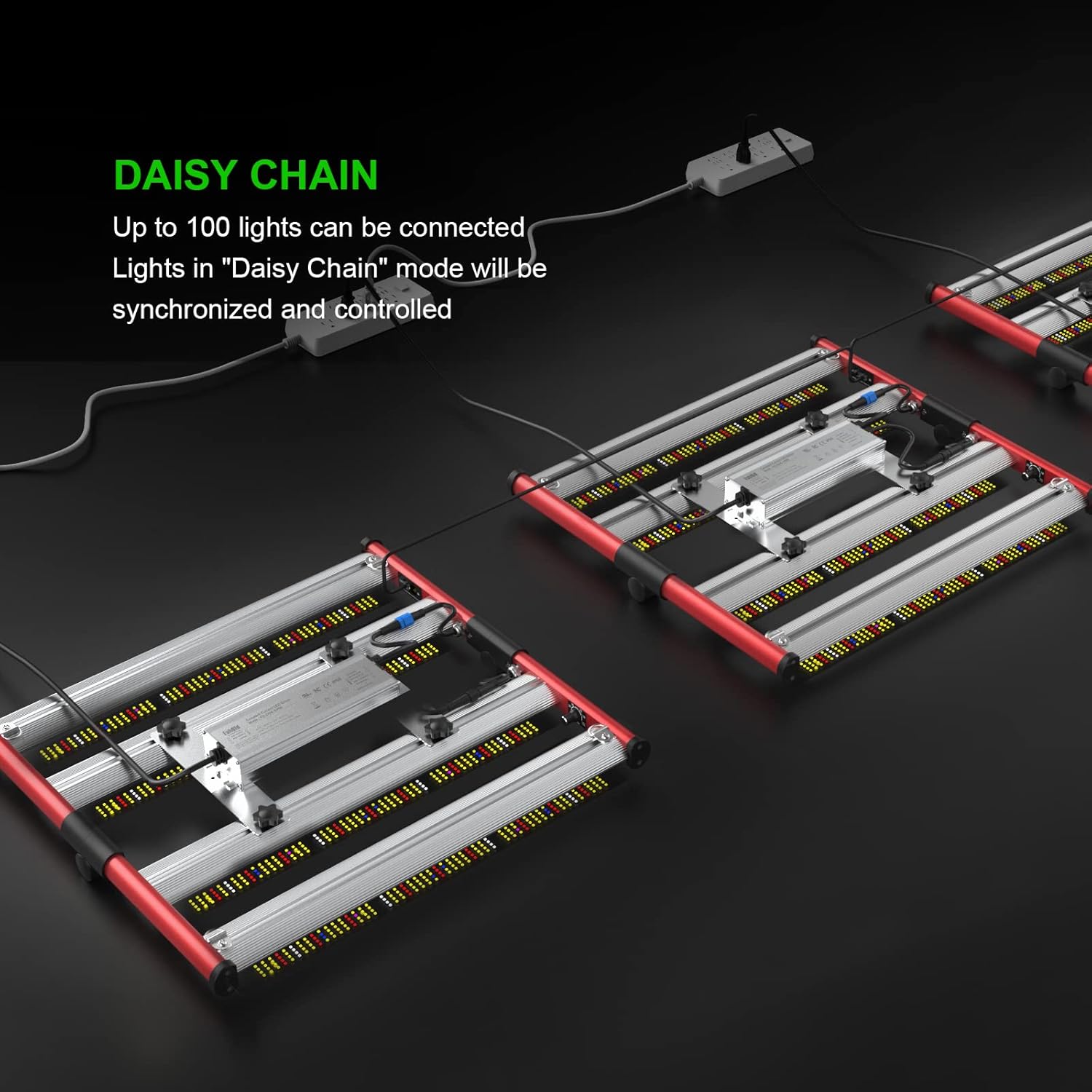 - DAISY CHAIN GROW LIGHTS - The daisy-chain function allows you to connect more than 100 lights with the RJ12 port at the same time. Not only daisy the solo model M240, you also can connect them with other models of M series grow lights, controlling them simultaneously. This function is very convenient for large area indoor growing and commercial planting. You can adjust the first light to control the rest lights. Note the rest lights dimmer should be at “A” firstly.