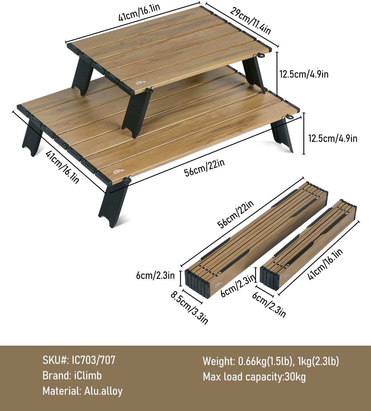 iClimb Ultralight Compact Mini Beach Picnic Folding Alu. Table with Carry Bag, Two Size (Nature - S)