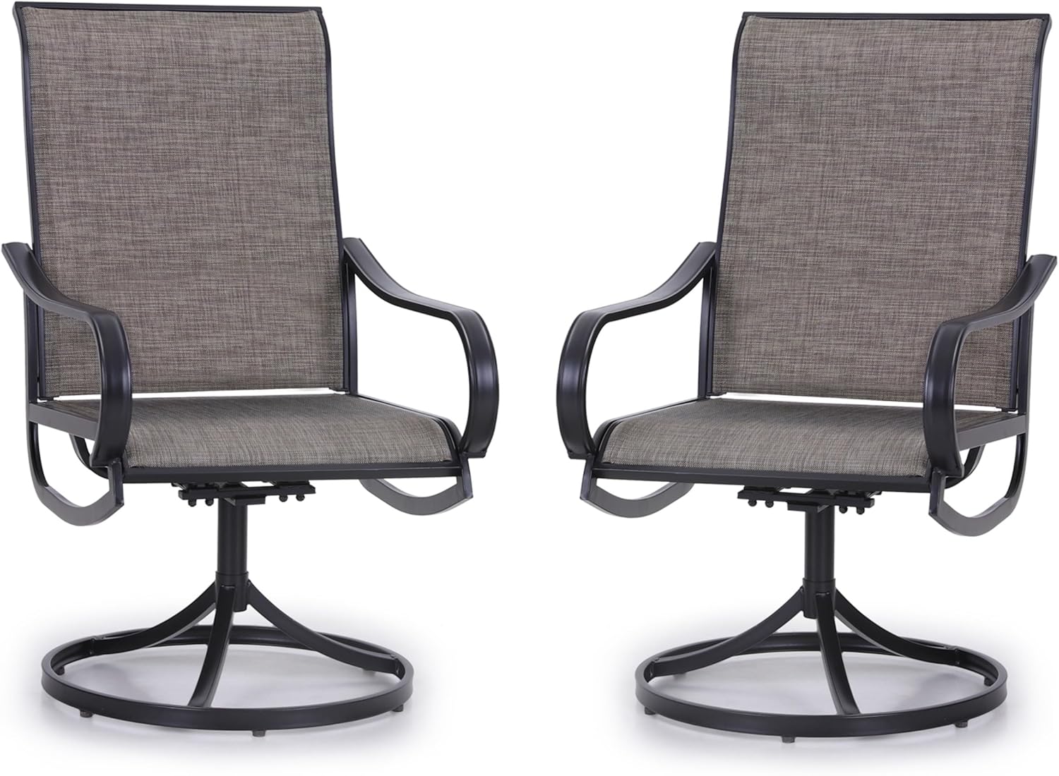 PHI VILLA Patio Swivel Dining Chairs Set of 2, Outdoor Metal Chair with Textilene Mesh Fabric, Patio Chair with Armrest, Black Frame for Patio Deck Garden