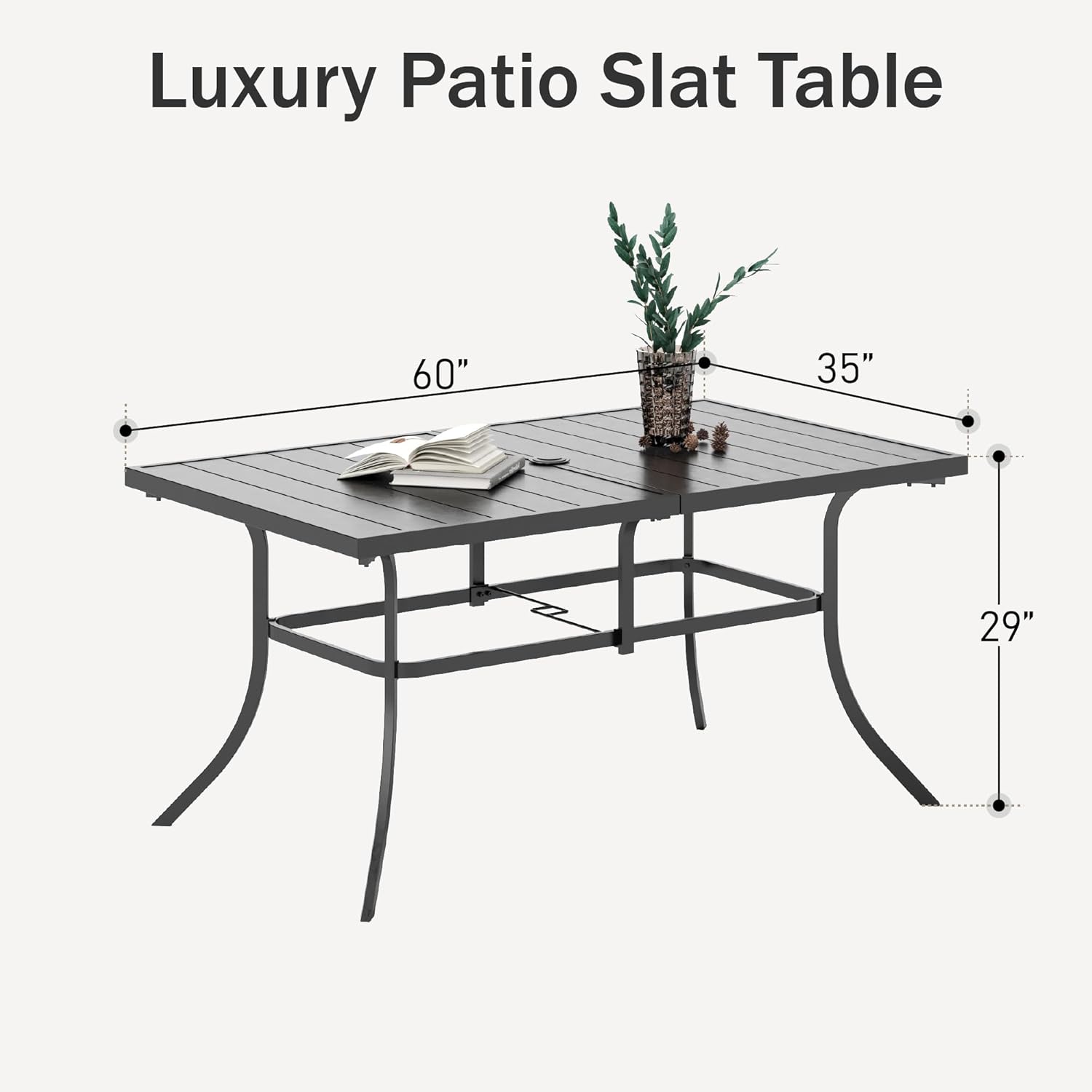 PHI VILLA 6-Person Outdoor Metal Steel Slat Dining Rectangle Table with Adjustable Umbrella Hole, Weather-Resistant for Patio Outdoor Use, Black
