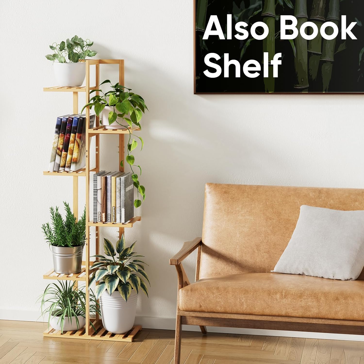 - EXCELLENT QUALITY: The ROSSNY plant stand is made of high-hardness sustainable bamboo, which has been grown for more than 3 years, guaranteeing its durability and stability. Plant holders can withstand heavy pots, with each layer bearing up to 20 pounds.