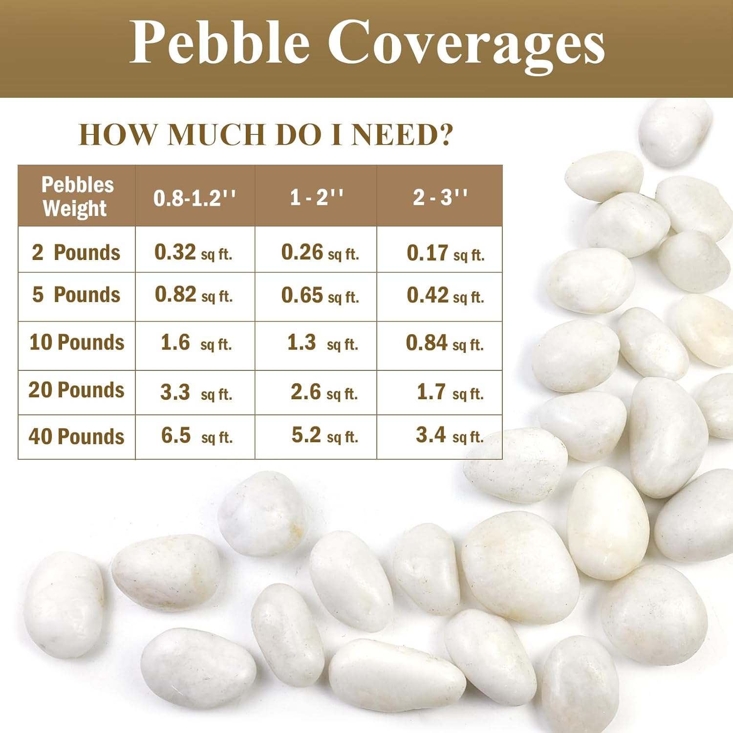 - 【5lbs white pebbles】5lb high polished white pebbles is about 0.8-1.2 inch. Due to machine screening, some stones will exceed 1.2 inch in length. This lovely decorative white pebbles is not pure white, there are a few grey pebbles and yellow pebbles in it. But they are very clean and have no dust or powder attached