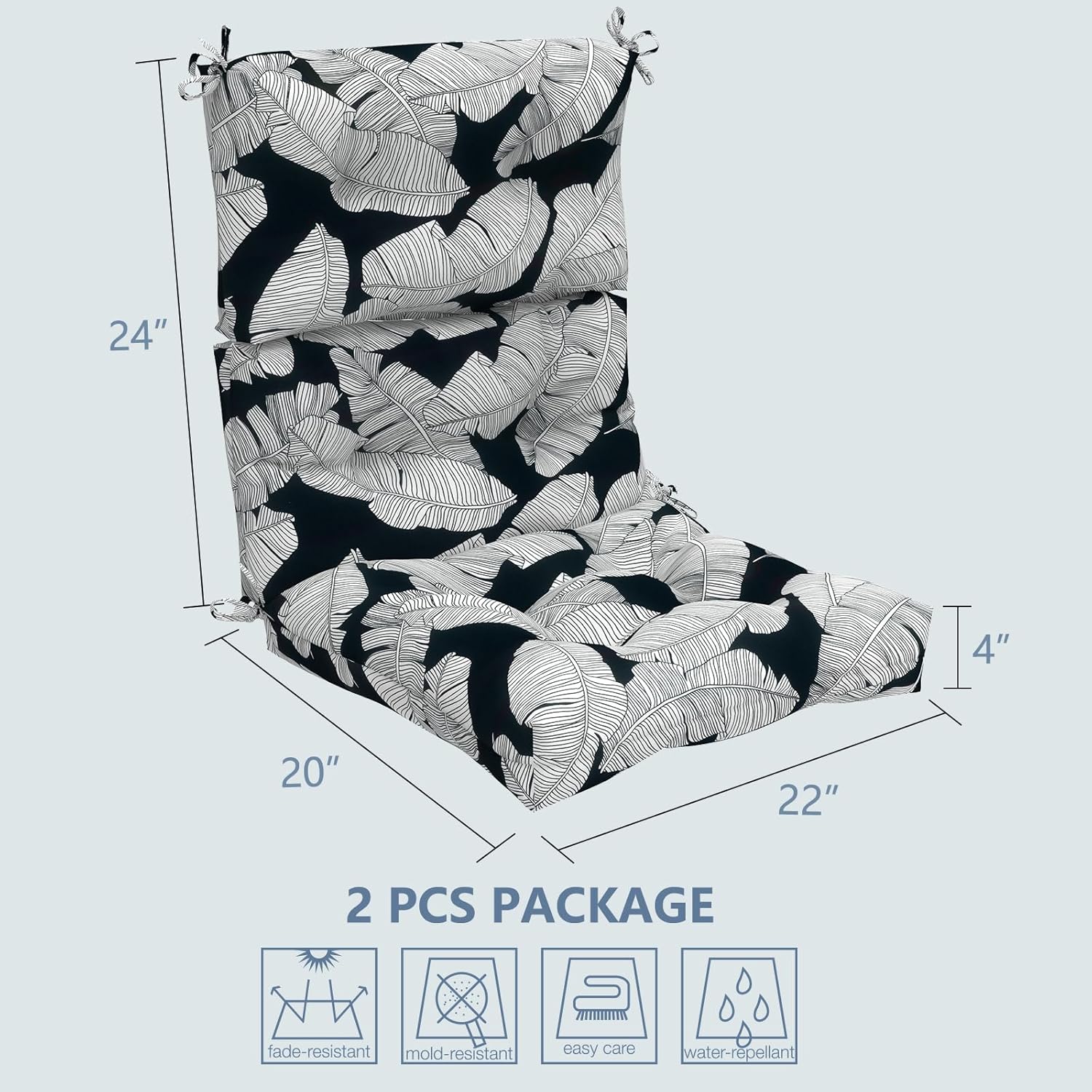 LVTXIII Outdoor Seat/Back Chair Cushion Patio Tufted High Back Cushion, Seasonal Replacement Rocking Chair Cushion with Ties (44” L x 22W”, Set of 2, Black Lush Leaf)