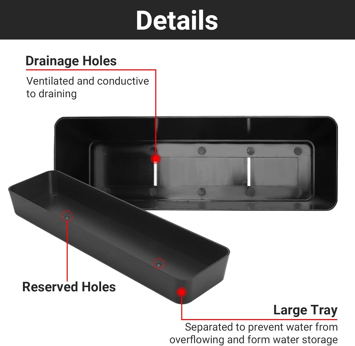 GREANER 6 Pack Herb Planters, 12x3.8 Inch Black Rectangle Window Boxes with Tray, Indoor Succulent Cactus Mint Plastic Pot for Windowsill, Balcony, Office, Outdoor Garden