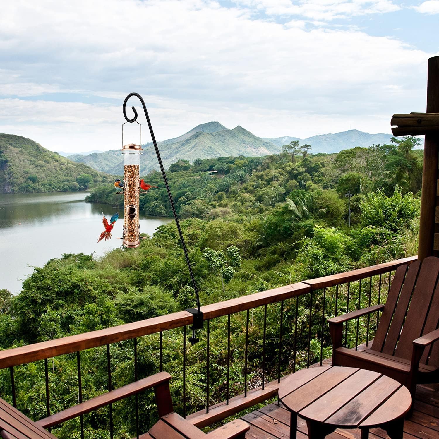 - Deck Hanger for Bird Feeder Premium Quality: We use High quality metal materials, the bird feeder pole can be adjusted. Our deck hook for bird feeder is a good outdoor and indoor decorative product