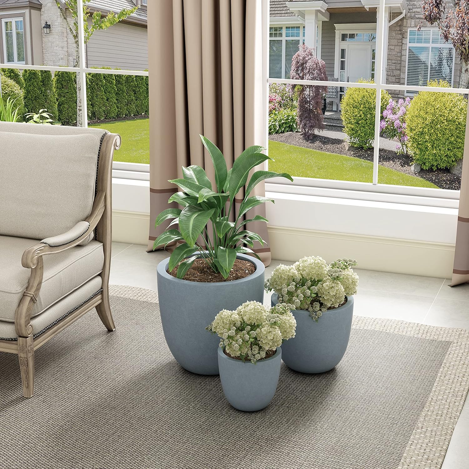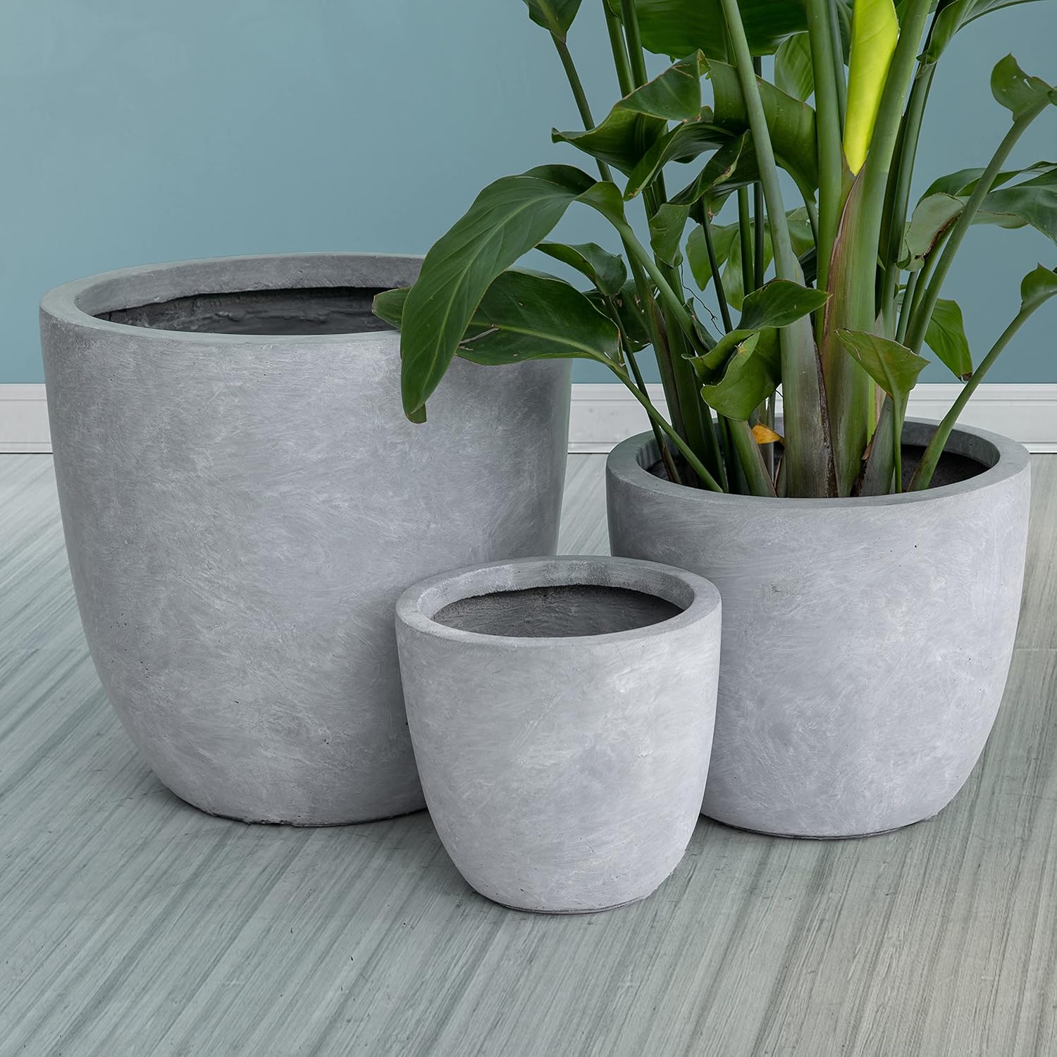 Kante 18",14",10" Dia Concrete Round Planters (Set of 3), Outdoor Indoor Large Planter Pots with Drainage Hole and Rubber Plug for Home Patio Garden, Gray