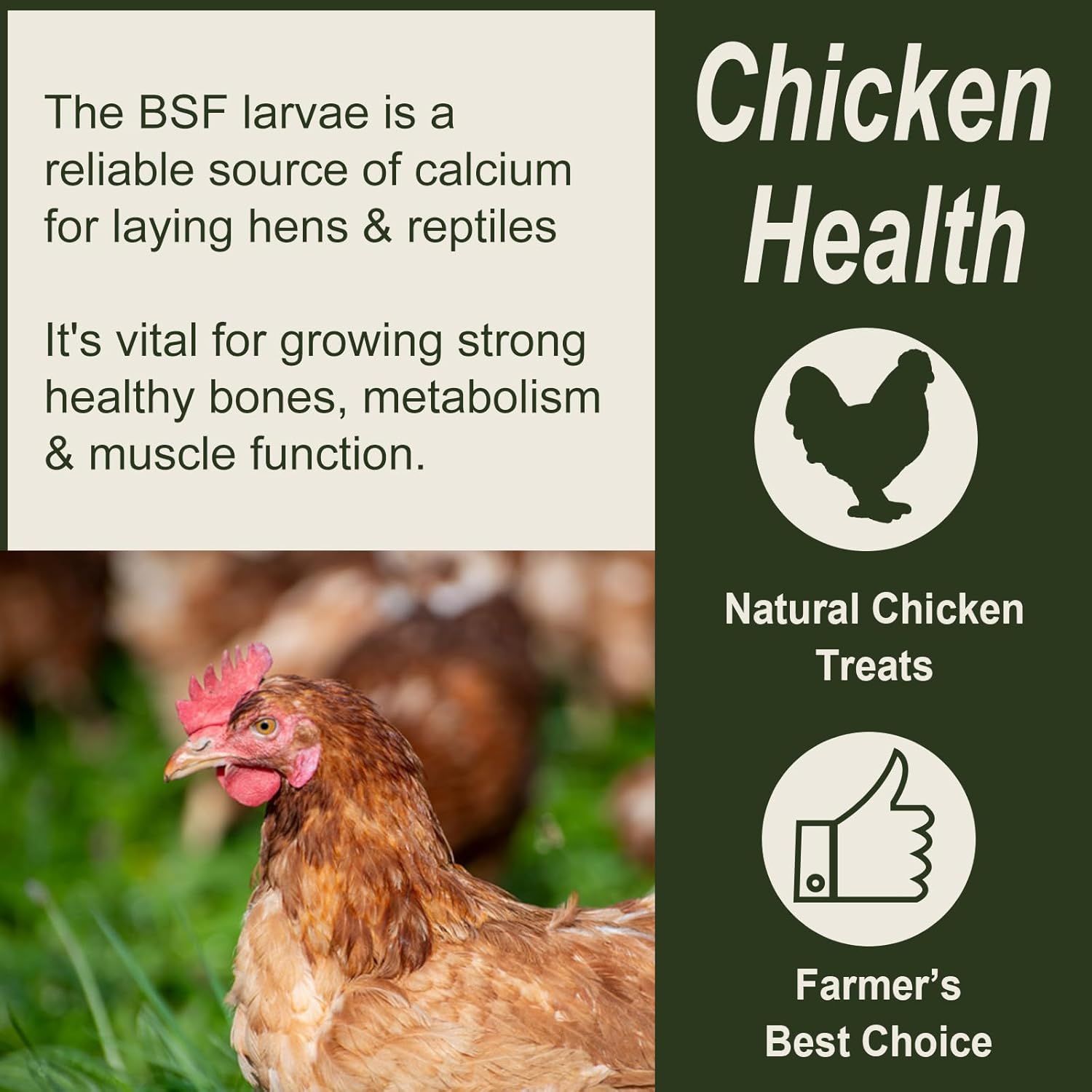 - PACKED FULL OF ENERGY: When you chickens eat the larva, they're getting the benefit of all that energy. Black Soldier Fly larvae make a great staple food or treat for chickens and many reptiles, like bearded dragons, leopard geckos, poison dart frogs, crested geckos, day geckos, and turtles etc.