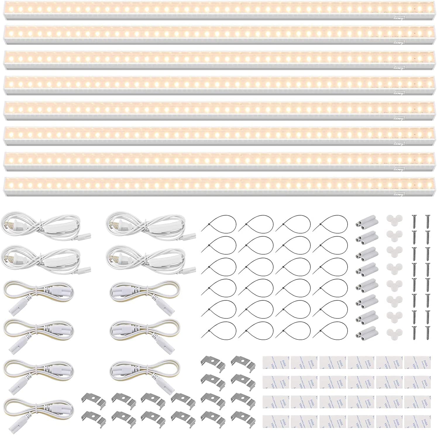 - Easy Install - With included Double-sided Tape, clips and cable ties, you could install the led grow light strips by yourself in minutes. Plug and play, and you could link up to 8 grow lights fixture in a series, saving your installation time