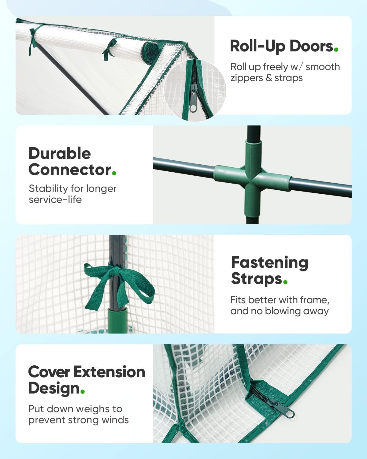 - [Easy Setup] - Start your plant business with the durable poles and connectors fast and easily within 10 minutes. The heavy duty frame ensures durability and longevity, even in harsh weather.