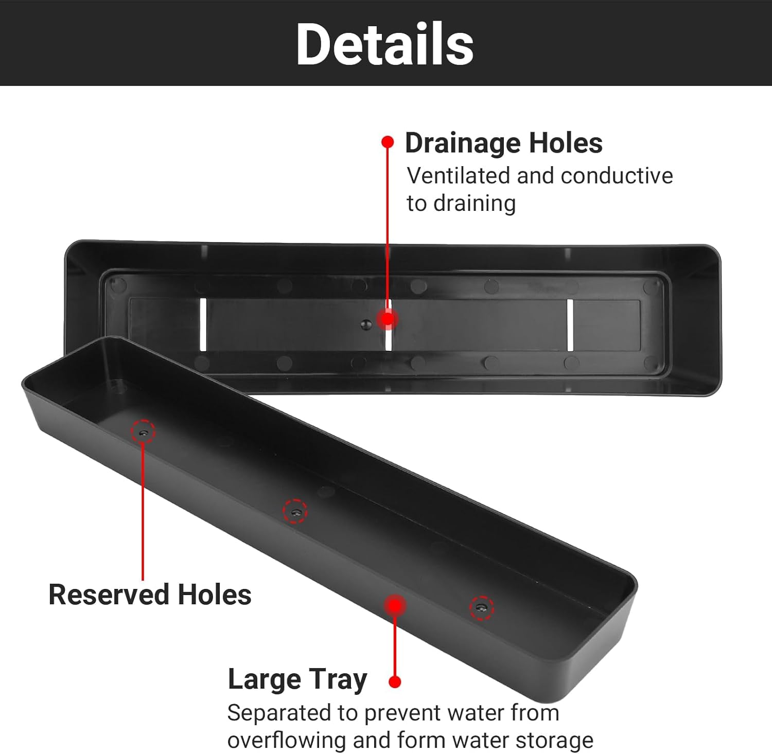 GREANER Rectangle Window Boxes, 6PCS 16x3.8 Inch Black Herb Planters with RemovableTray and Drainage Hole, Succulent Flowers Plastic Pot for Balcony, Office, Windowsill, Garden, Outdoor Decoration Use