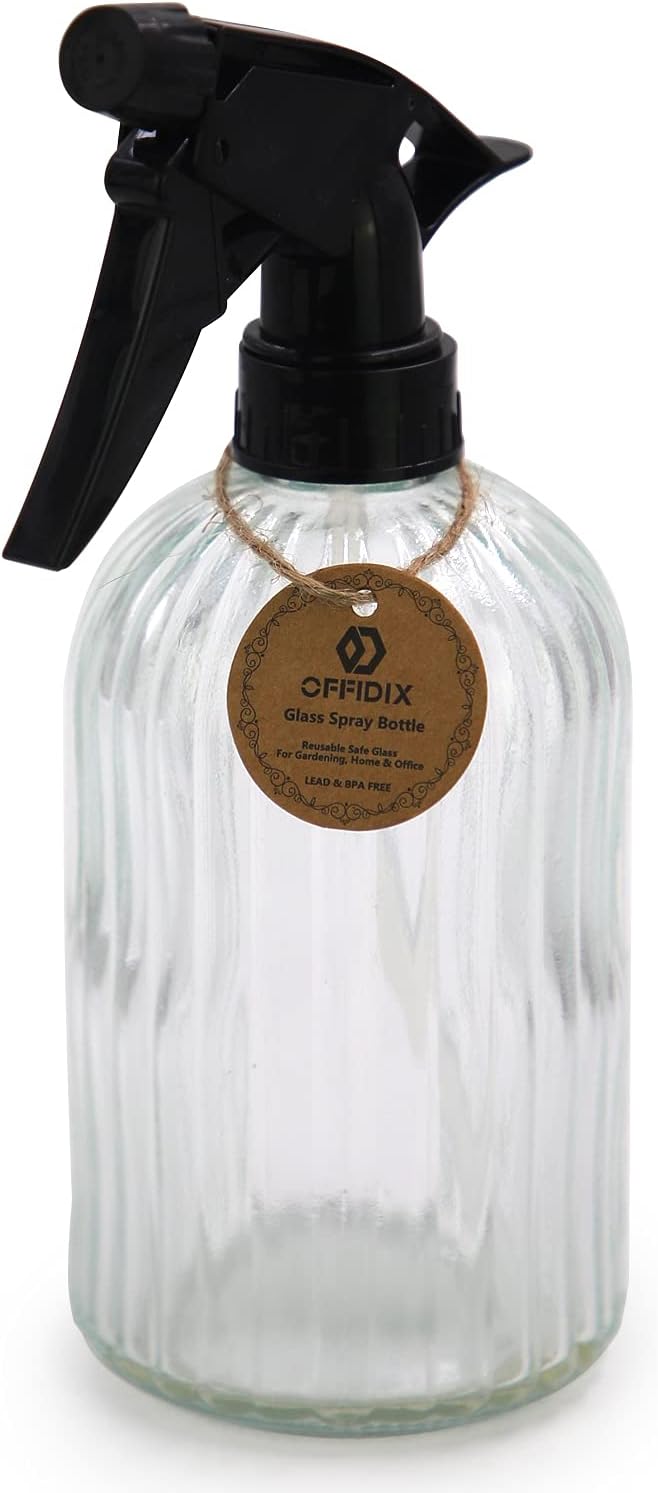 OFFIDIX Spray Bottle, Pressure Watering Can, Handheld Spray Bottles, Outdoor Indoor Plant Mister, 0.4L/13.5oz Glass Water Spray Bottle for Garden, Plants, Cleaning, Hairdressing (Clear)