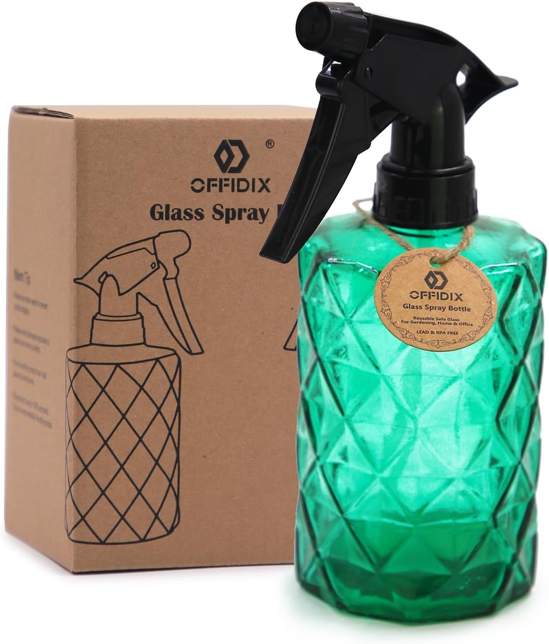 OFFIDIX Fine Mist Plant Mister, Handheld Pressure Glass Spray Bottles, 0.35L/11.8oz Watering Can with Adjustable Nozzle for Outdoor Indoor Gardening and Cleaning Work (Green)