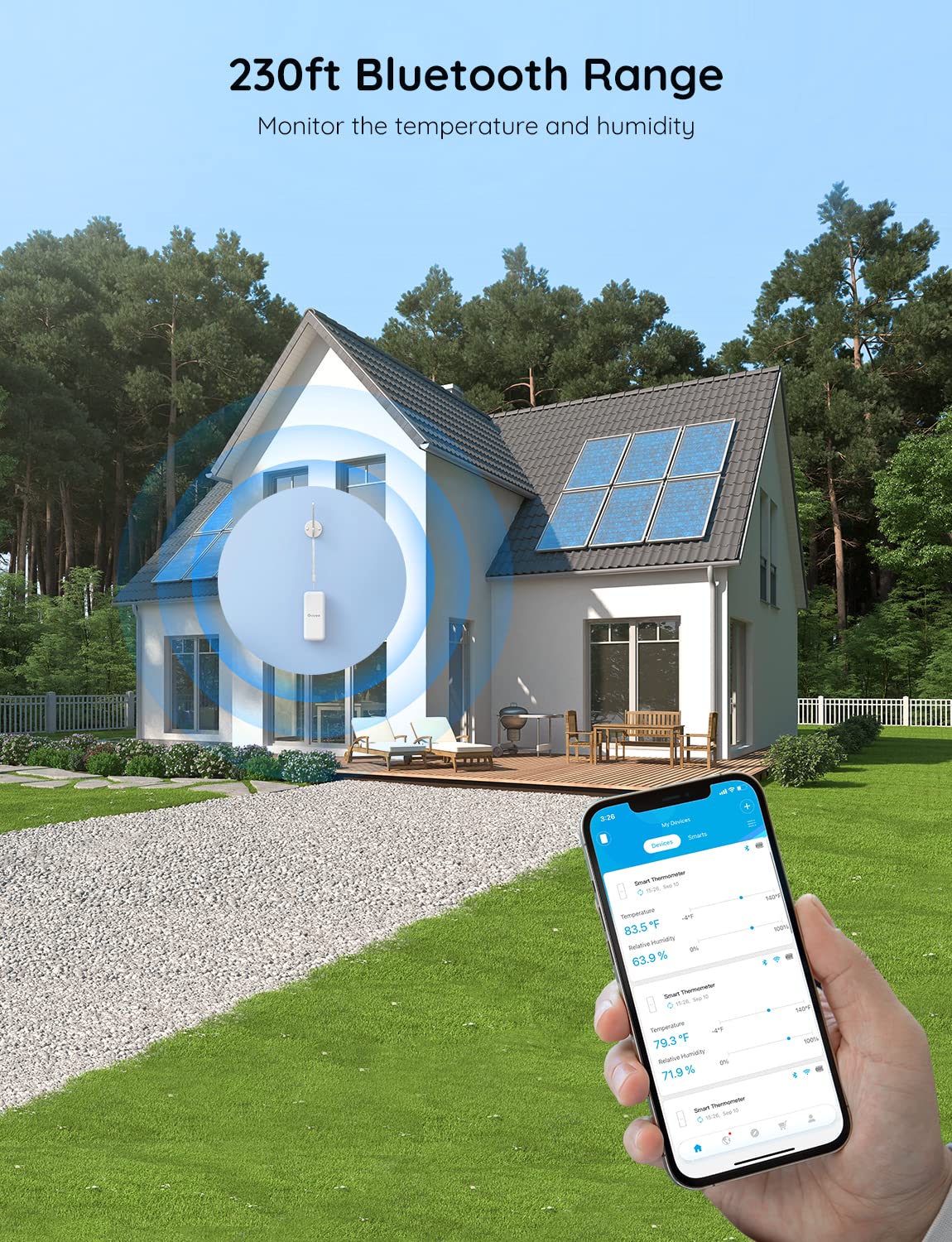 - Data Storage & Export: Our free cloud service allows for 20-day online data storage and 2-year data export. Keep track of the recent temperature and humidity records via curve graphs and track your historic 2-year data in a CVS file.