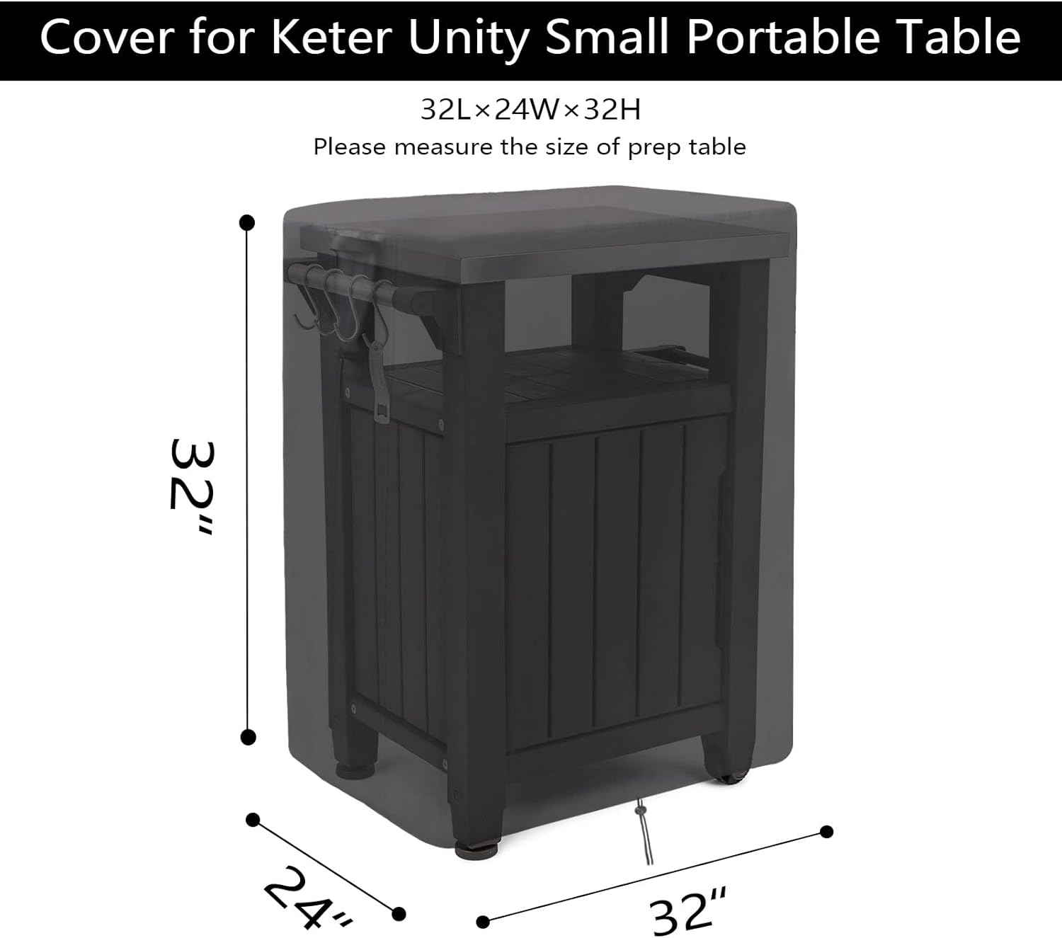 Prep Table Covers for Keter Unity Outdoor Kitchen Portable Bar Cart,Waterproof Patio BBQ Grill Cart Cover,Outdoor Pizza Oven Table Stand Cover - 32 x 24 x 32 Inch