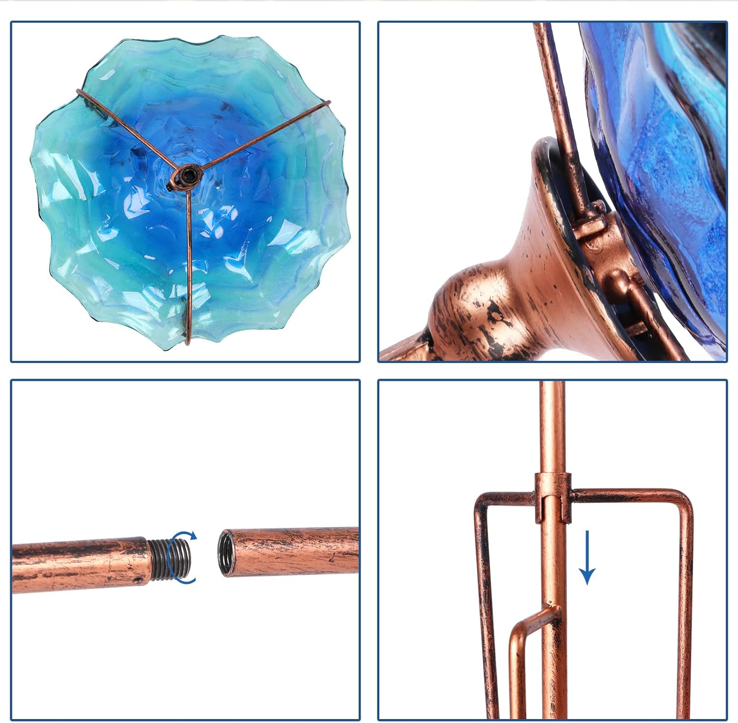 VCUTEKA Outdoor Bird Bath Glass Birdbath Garden Bird Feeder with Metal Stake Blue