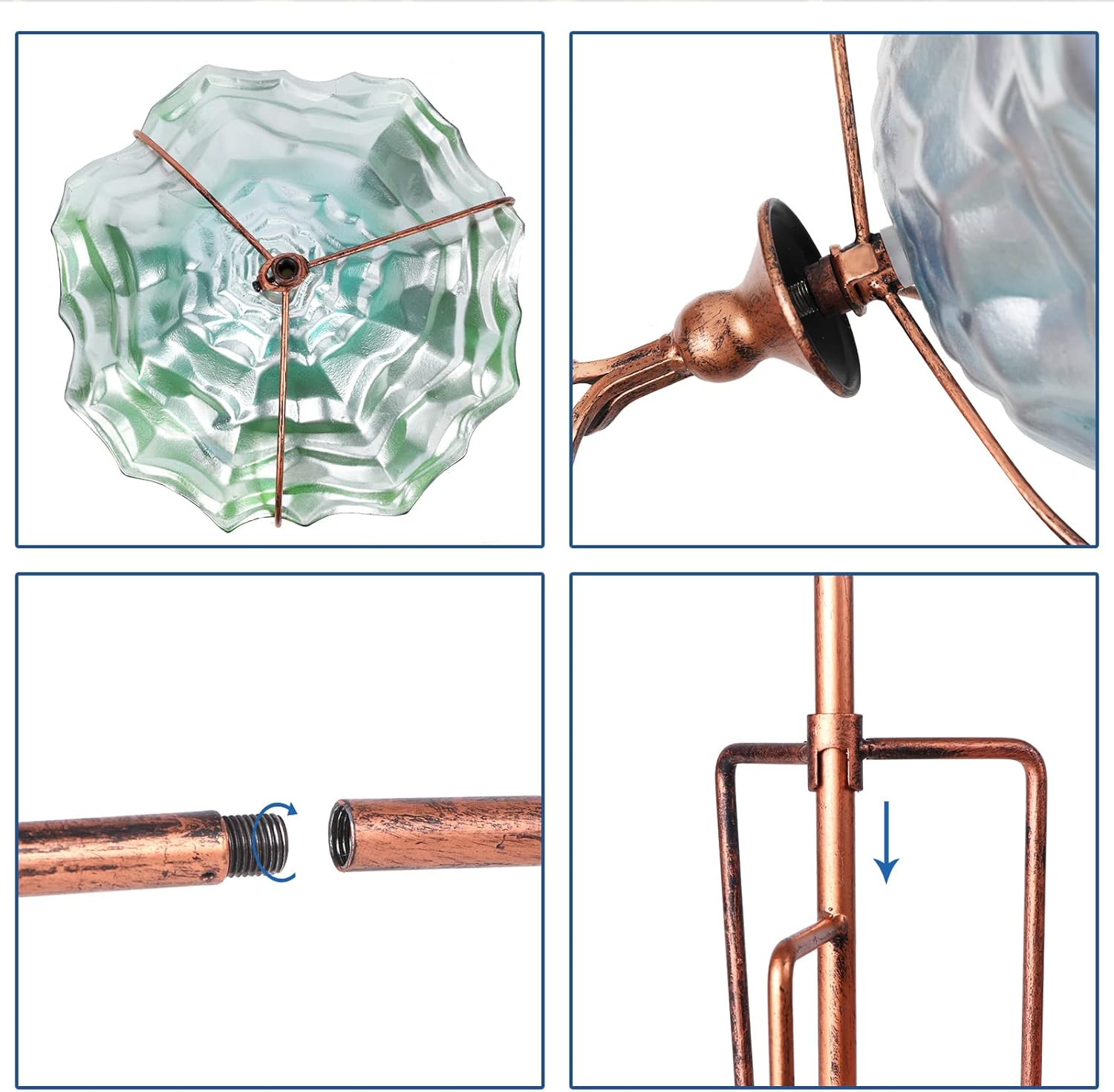 VCUTEKA Bird Bath Glass Outdoor Birdbaths Garden Yard Decor Bird Feeder with Metal Stake Green