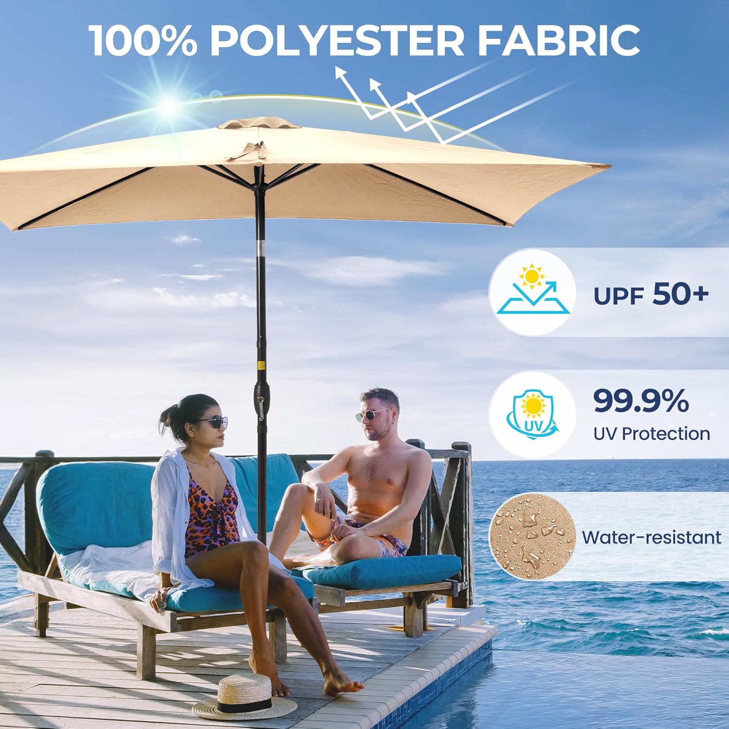 • FADE-RESISTANT: Patio umbrella is made of 100% polyester fiber, waterproof and UV resistant. Garden umbrella 200g/sqm polyester sombrillas de patio can last for many years with colorfastness of Grade 4 min. at 400 hours