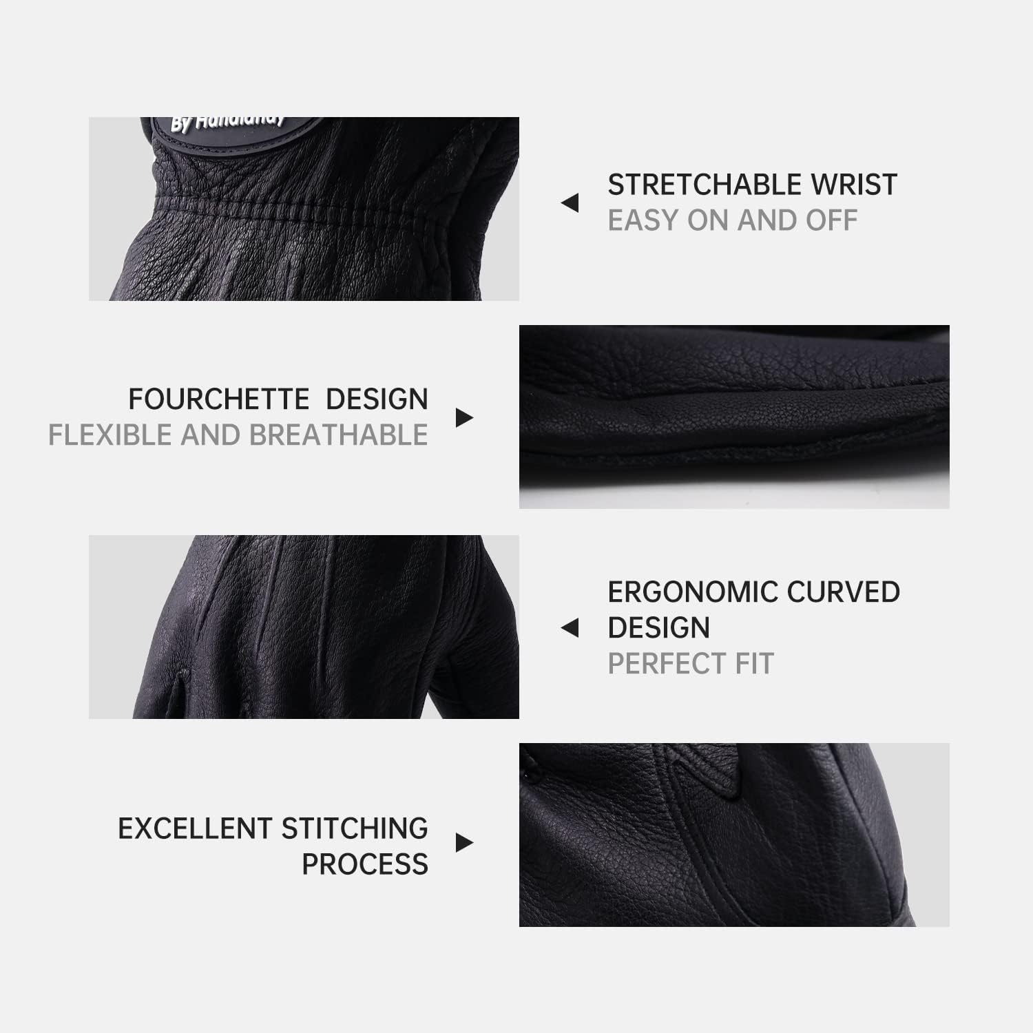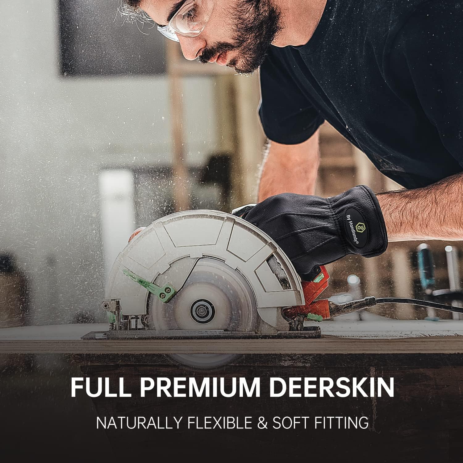 - Deerskin Leather Work Gloves - North American original genuine deerskin leather, nature tanning, comfortable and durable. High quality thick deerskin material, superior abrasion and puncture resistance, protect your hands from cuts and scratches