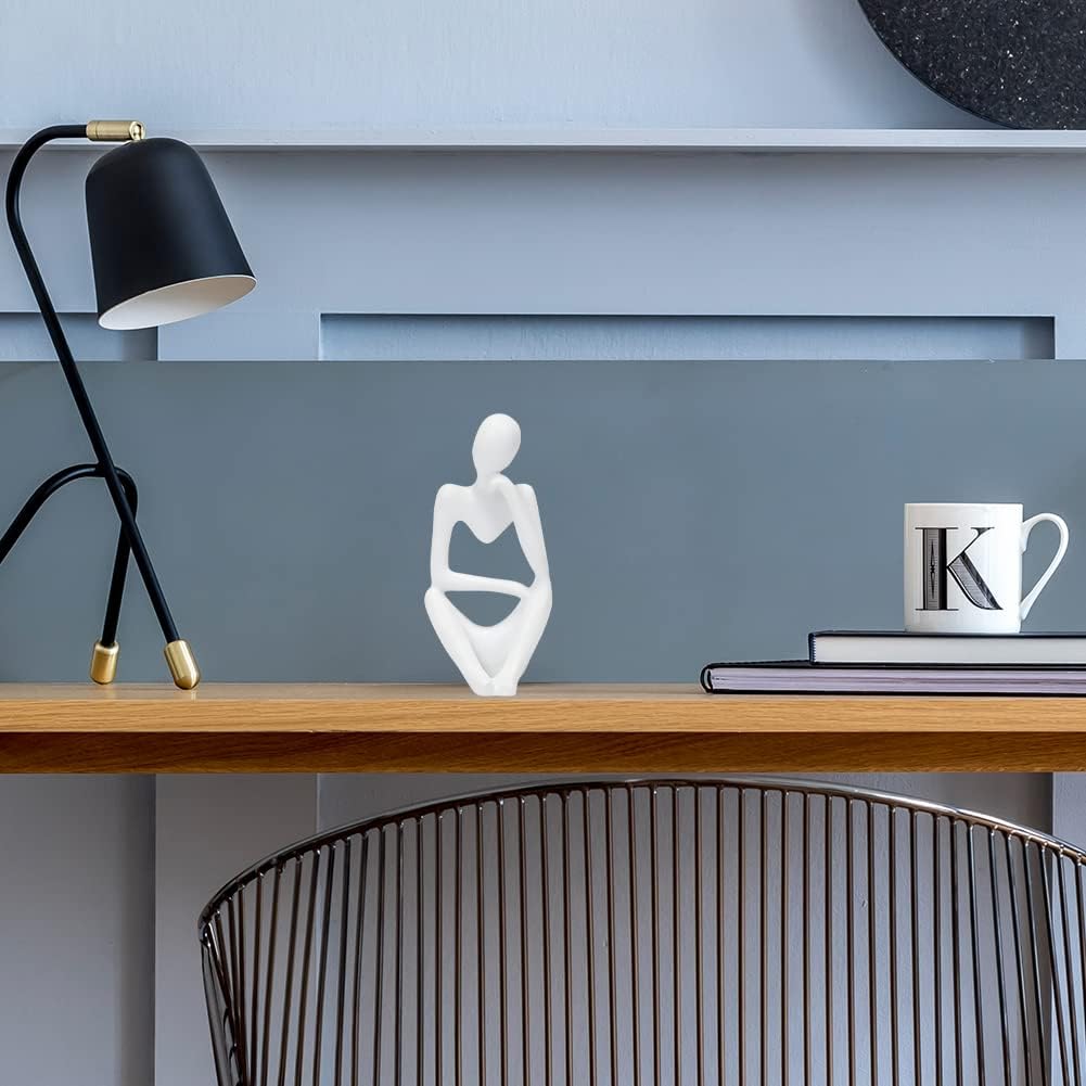 INNOLITES Resin Statue Thinker Style Decoration Abstract Sculptures Collectible Figurines for Home Decor Modern Office Shelf Desktop(White Right)