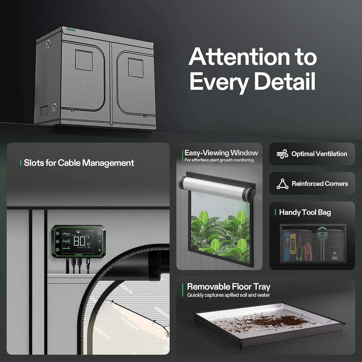 - Fast Installation: Vivosun grow tents are easy to install with no tools needed, even if you've never done something like this before; unrivaled craftsmanship and materials make our grow tent the excellent choice for professional growers