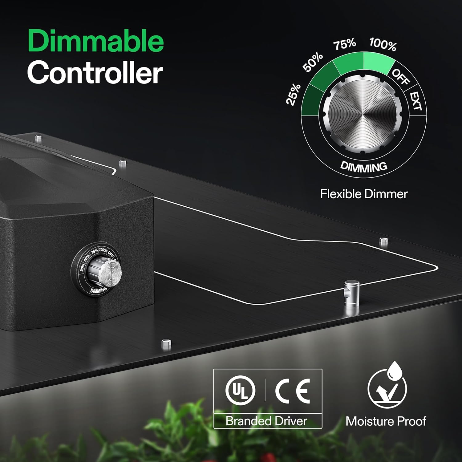 - Dimmable Ballast: This LED plant lamp has a dimming knob with 4 levels that can be used from sprouting to flowering; Designed with the daisy chain function (EXT) that allows you to connect multiple lights with 1 socket