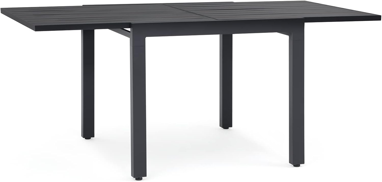 - ăMODERN DESIGN & ELEGANT APPEARANCEă: With clean-cut lines, our expandable patio table is the ideal modern accessory for your indoor/outdoor space. Finished with smooth aluminum frames and a slatted design, this outdoor table not only offers a chic, minimalistic look but also provides a stable structure.