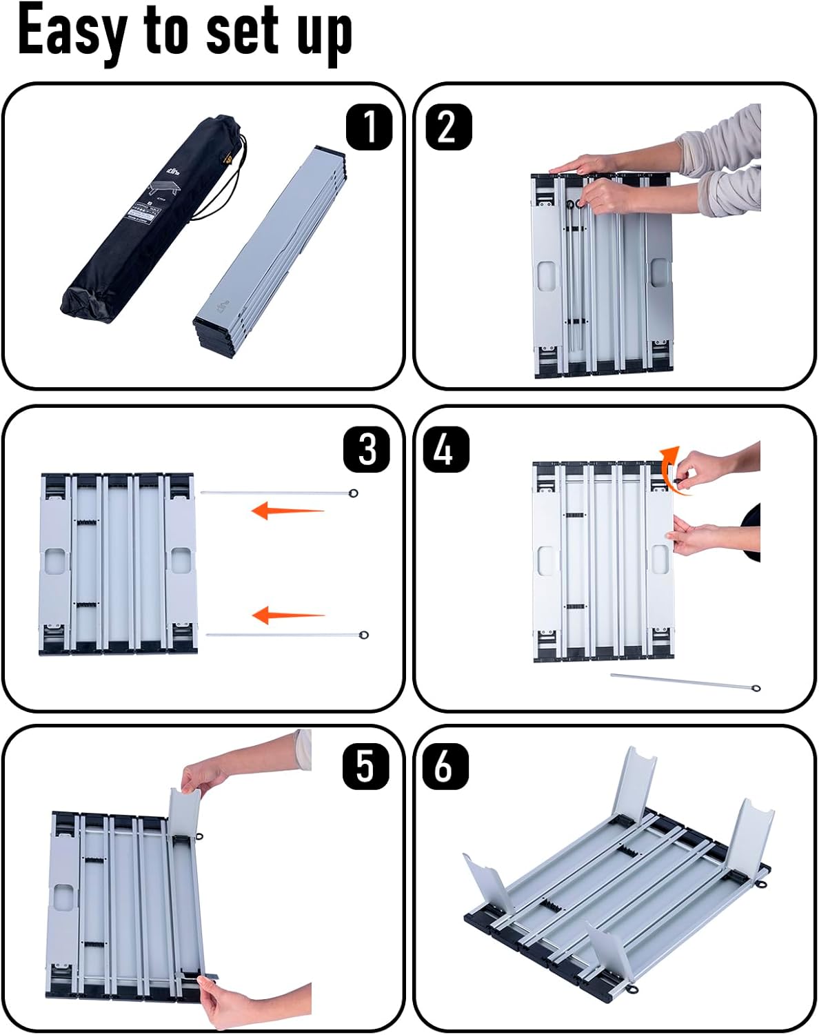 - Very easy to set up, just open the base frame and fix them with the bars, enjoy your leisure time in seconds; Perfect height and size for drinks and snacks when relaxing on your camping chairs, have a picnic in the garden, as a beach table, go fishing, have breakfast on the bed.