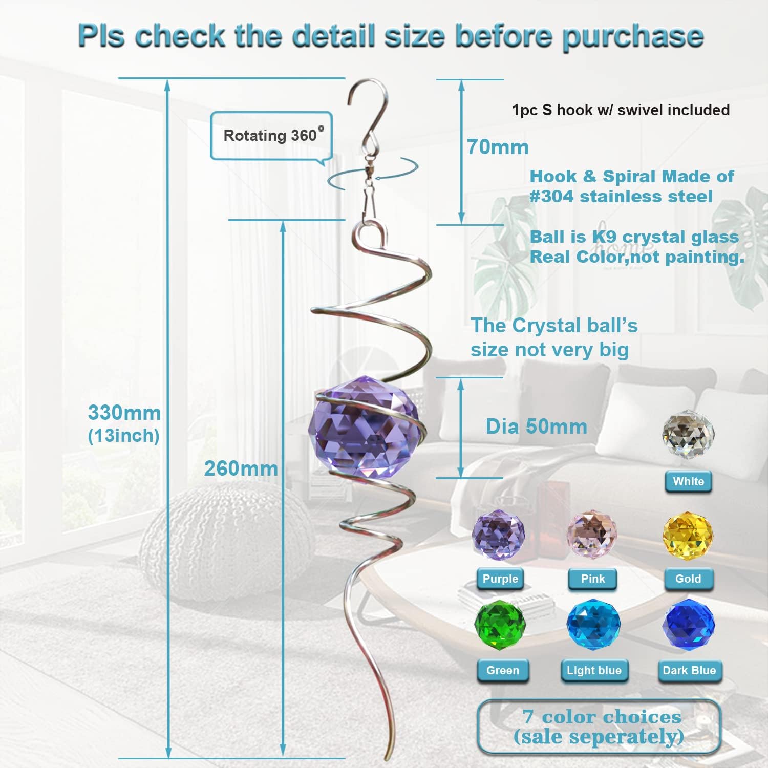 - 【PREMIUM CRYSTAL SUNCATCHER】The spiral with crystal is a special sun catcher rainbow maker, it’s Super Sparkly under sunshine. You can also add a motor(not include) to let the spiral to spin ,while spiral tail rotating (it can’t spin by itself.), the crystal ball seems to move up and down like floating and dancing in air while spiral tail rotating, presents the magical visual illusion.