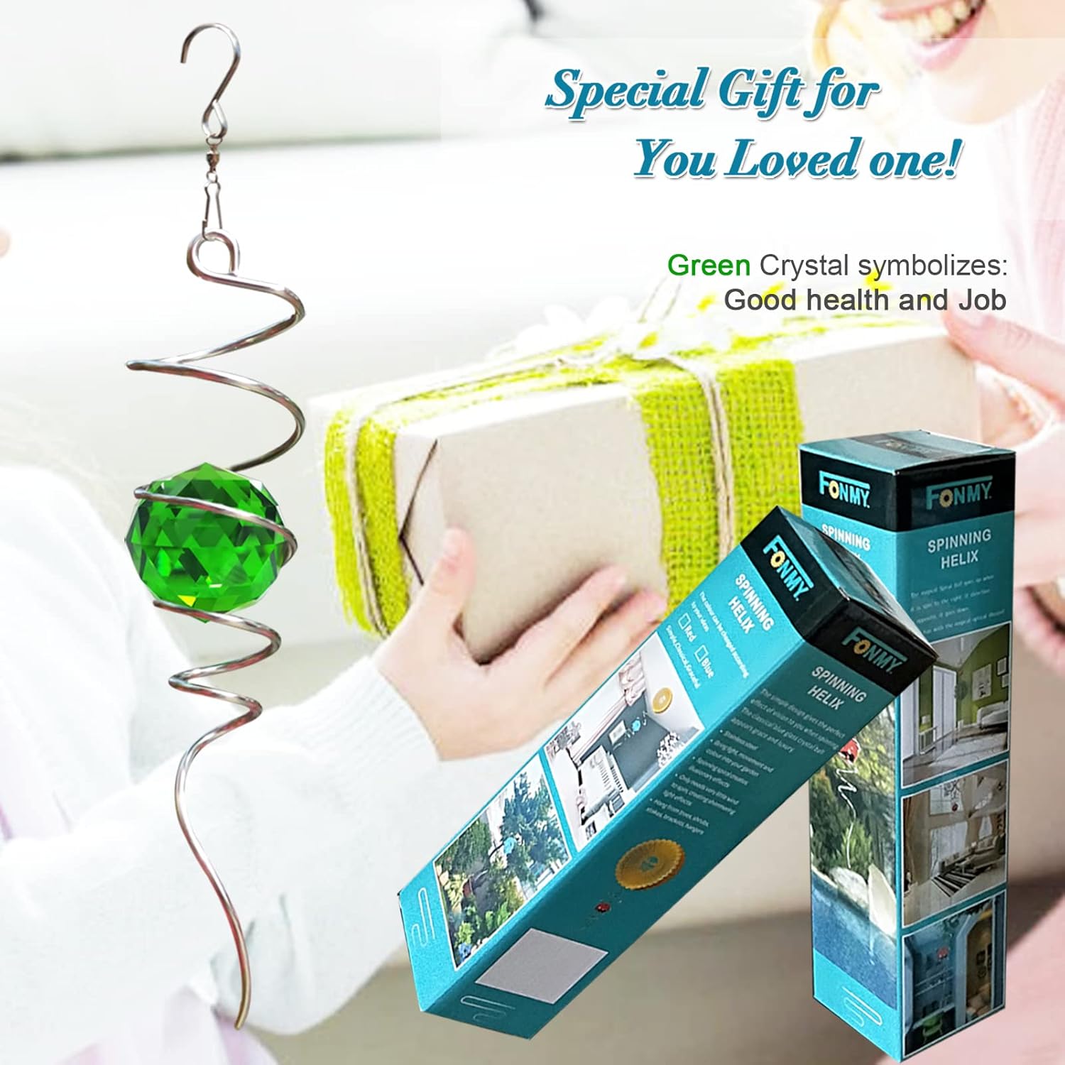 Fonmy Gazing Ball Spiral Tail -Decorative Wind Spinner Sun Catcher Rainbow Maker 11 inch Tail and 2 inch Green Crystal Orb. Indoor Outdoor Garden Decoration -13 inch Height