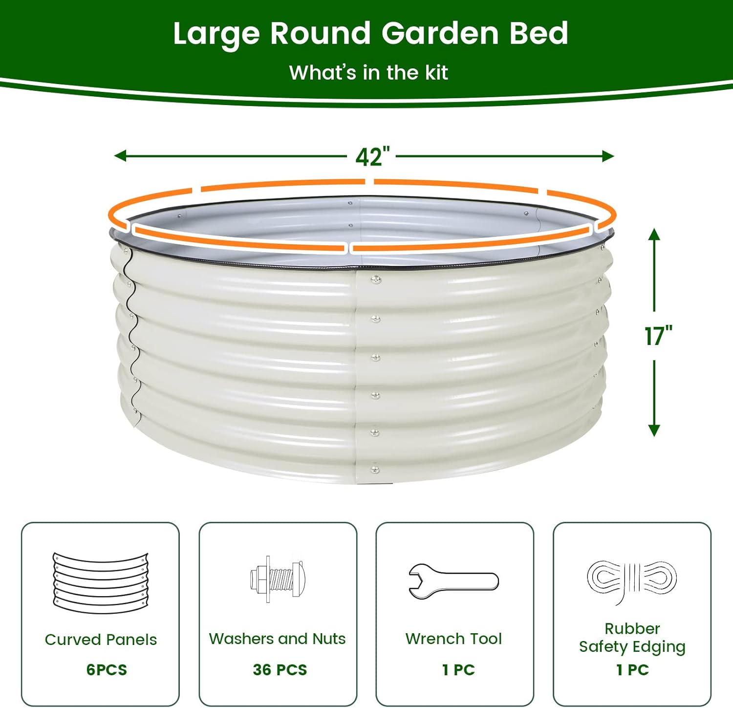Olle 17" Tall, 42" Round Metal Raised Garden Bed Kits, Planter Raised Beds for Gardening, Raised Flower Bed Galvanized Planter Box, 3.5 * 3.5 * 1.4Ft,Ivory