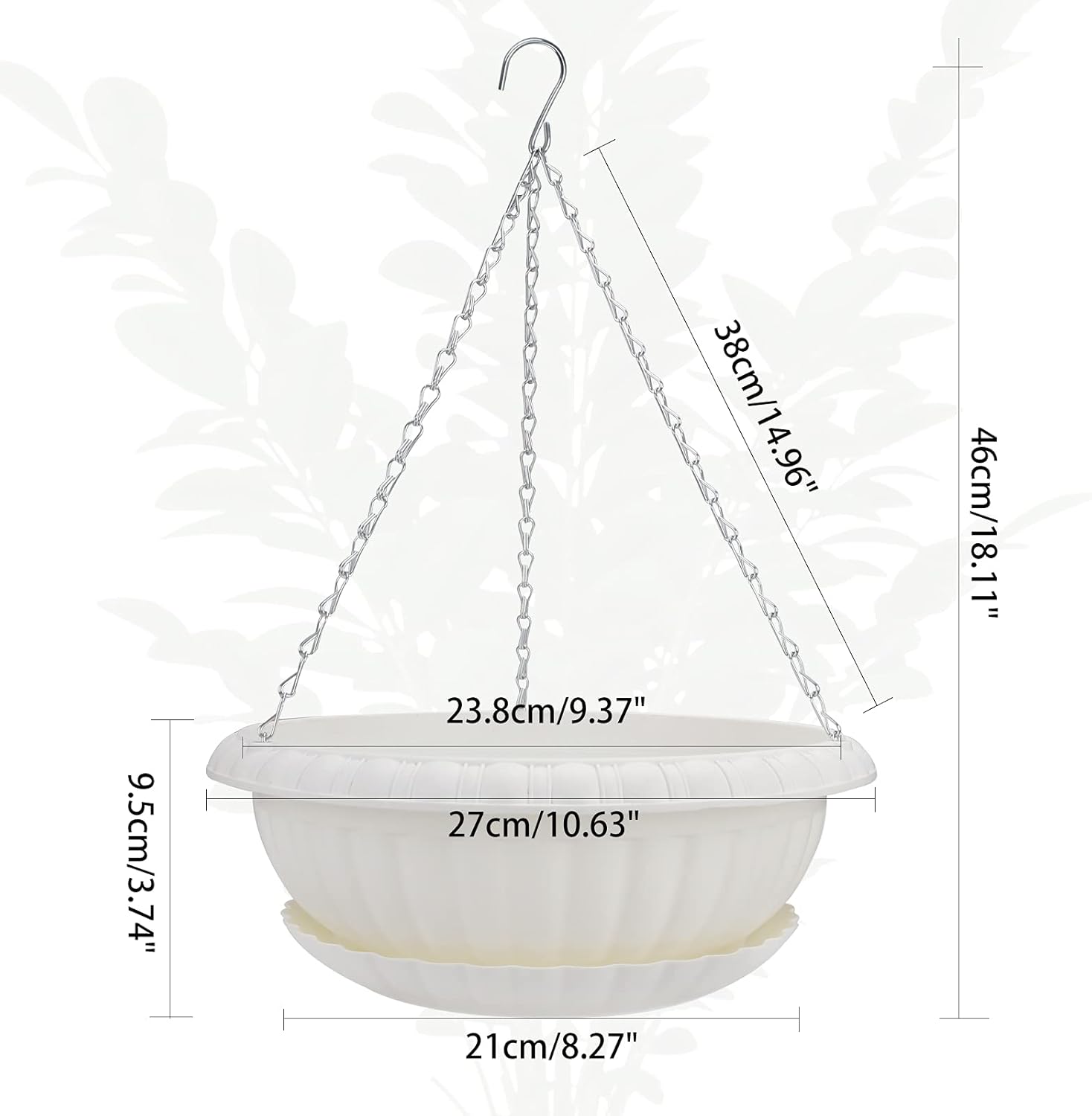 - Size: Outer diameter 27cm/10.63', inner diameter 23.8cm/9.37', total height(with tray, not including chain) 46cm/18.11'.