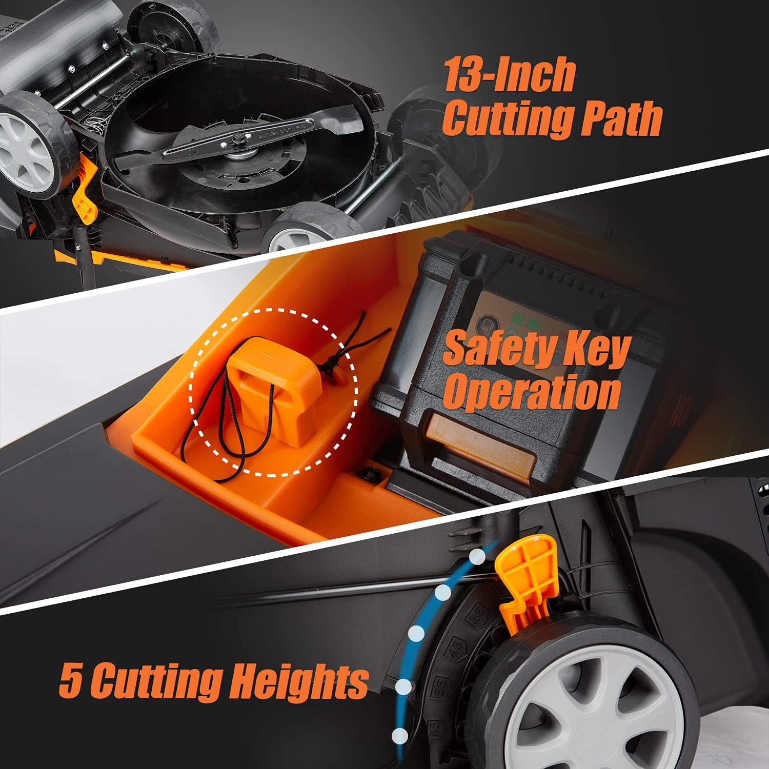 - CORDLESS FREEDOM: Mower is powered by a 24V MAX* 4.0Ah lithium-ion battery for up to 22 minutes of battery runtime and collects 6.5-gallons of lawn clippings