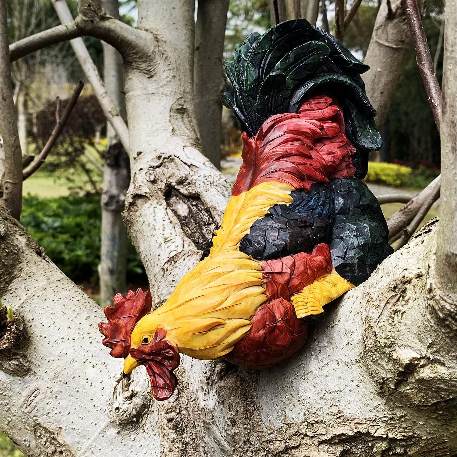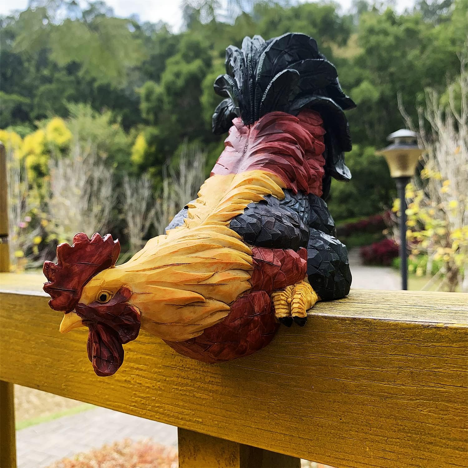- 🍀Our Rooster is Sculpted of resin and realistically painted, Perched atop a window sill or a shelf inside your home or Garden, Looks like a lifelike chicken.