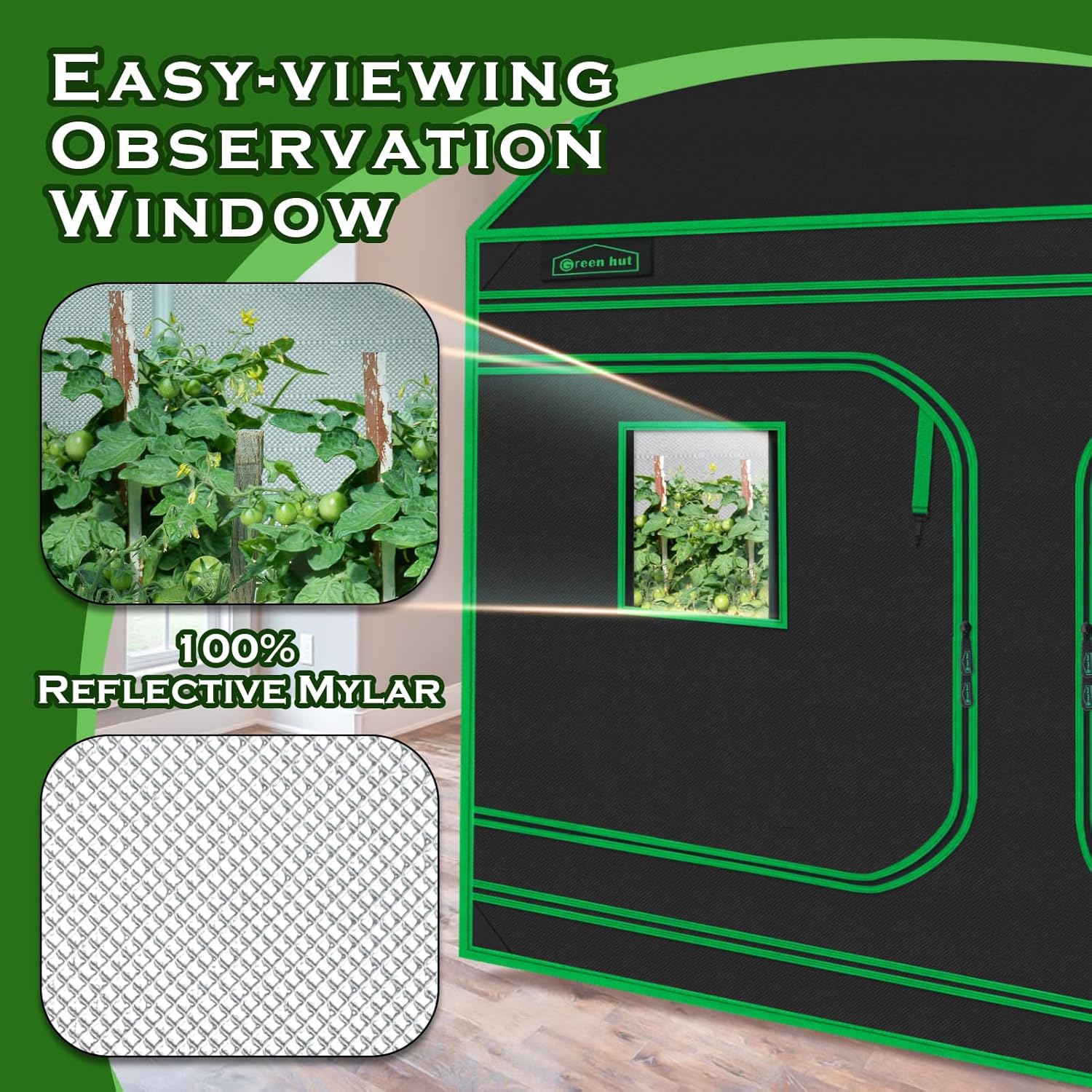 - EASY OBSERVATION --- A transparent visible window set on the grow tent, you can check the growth status of your plants at any time; The window at the bottom is helpful for heat dissipation; The hook and loop fasteners on the cover of the window are easier for you to open and observe inside; It is also equipped with a removable floor tray that is convenient to be cleaned and conserved.