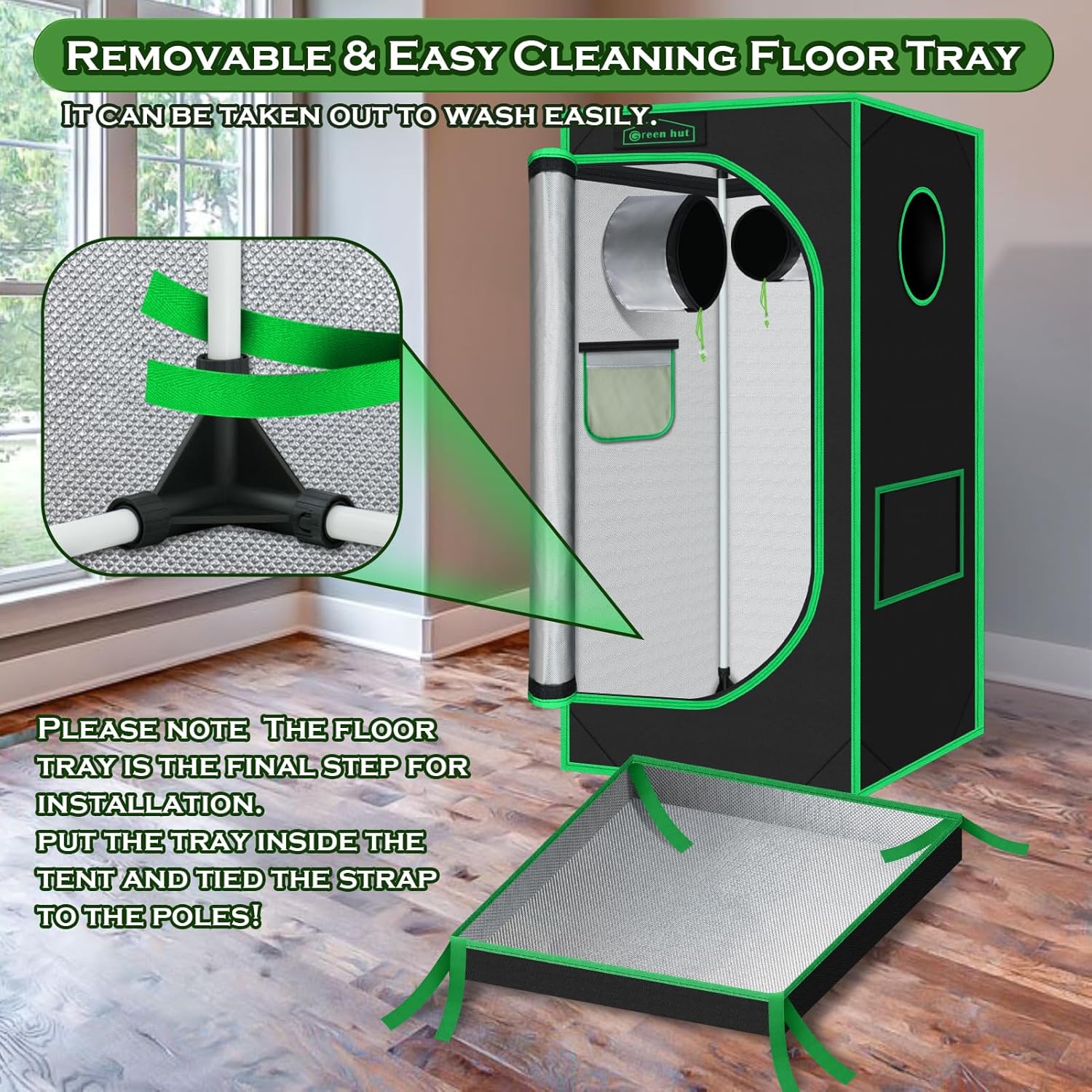 - HIGHLY REFLECTIVE --- The grow tent includes a removable Mylar floor tray, and a 100% light-proof, tear-proof reflective Mylar lining to assist your indoor growing light fixtures and equipment. Increase the intensity of your grow lights and retain heat to keep your grow room at the right temperature for your plants, herbs, flowers, fruits, and vegetables to thrive