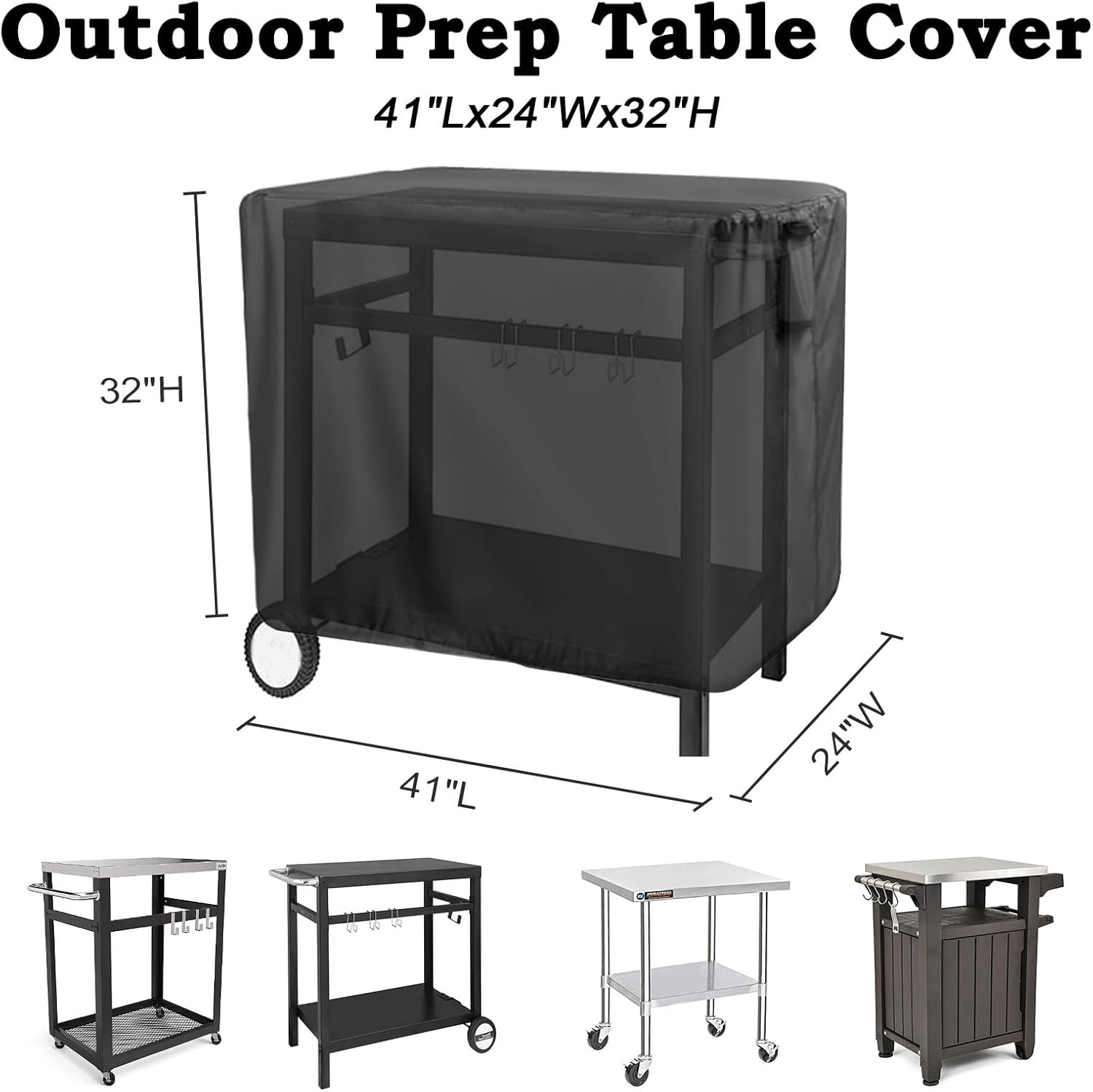 - Outdoor Dining Cart Cover Dimensions: 41" Lx24" Wx32" H; Patio prep table cover designed for Royal Gourmet double-shelf movable dining cart table PC3401B&PC3401S; Also compatible with similar size outdoor furniture, patio table, outdoor cooler cart, storage bench, outdoor bar, etc