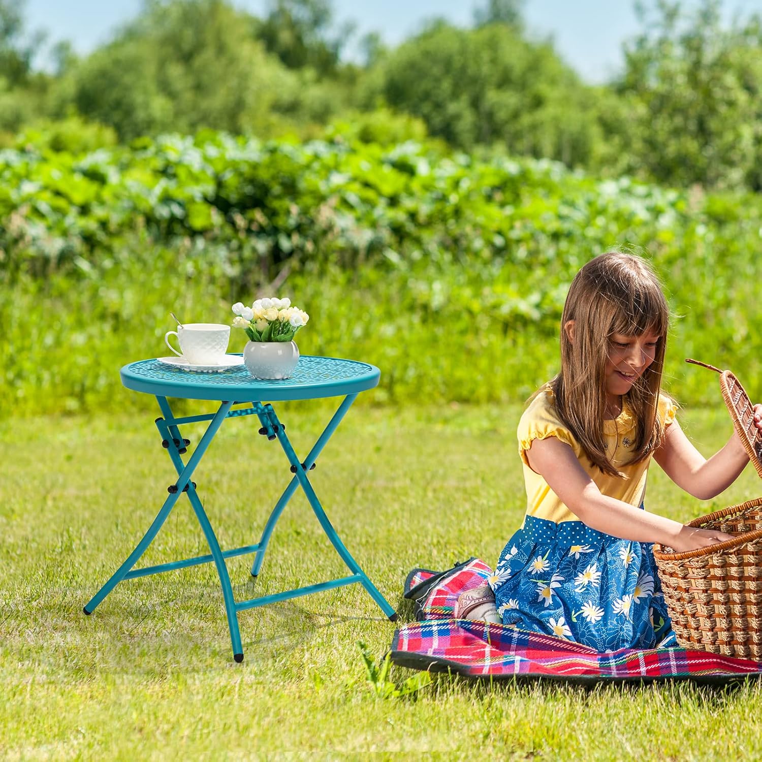 - No Assembly: This patio side table is ready to use, no assembly required. The small patio table folds down easily and opens back up fast. This foldable side table is a great buddy of your excursion, you can enjoy your cozy snack time with a smile heart
