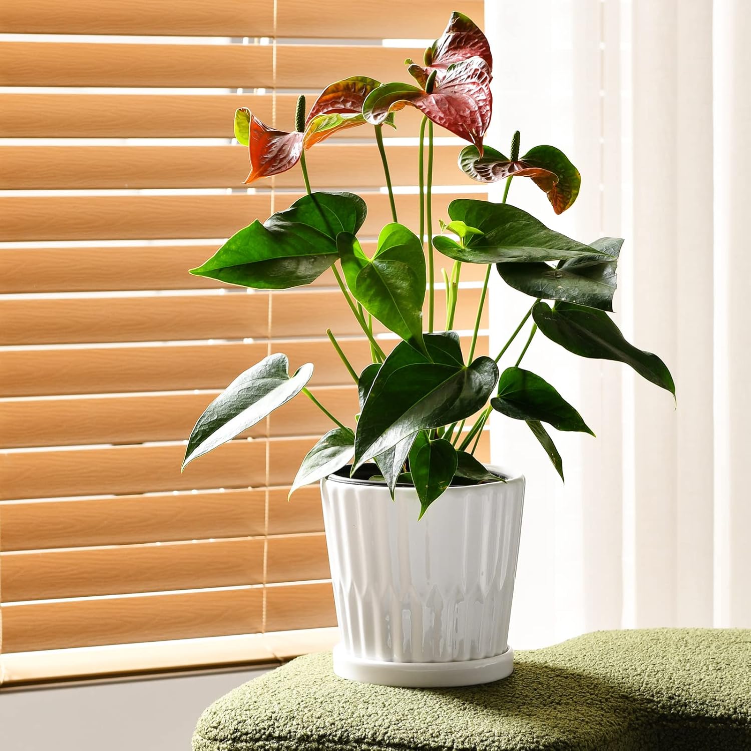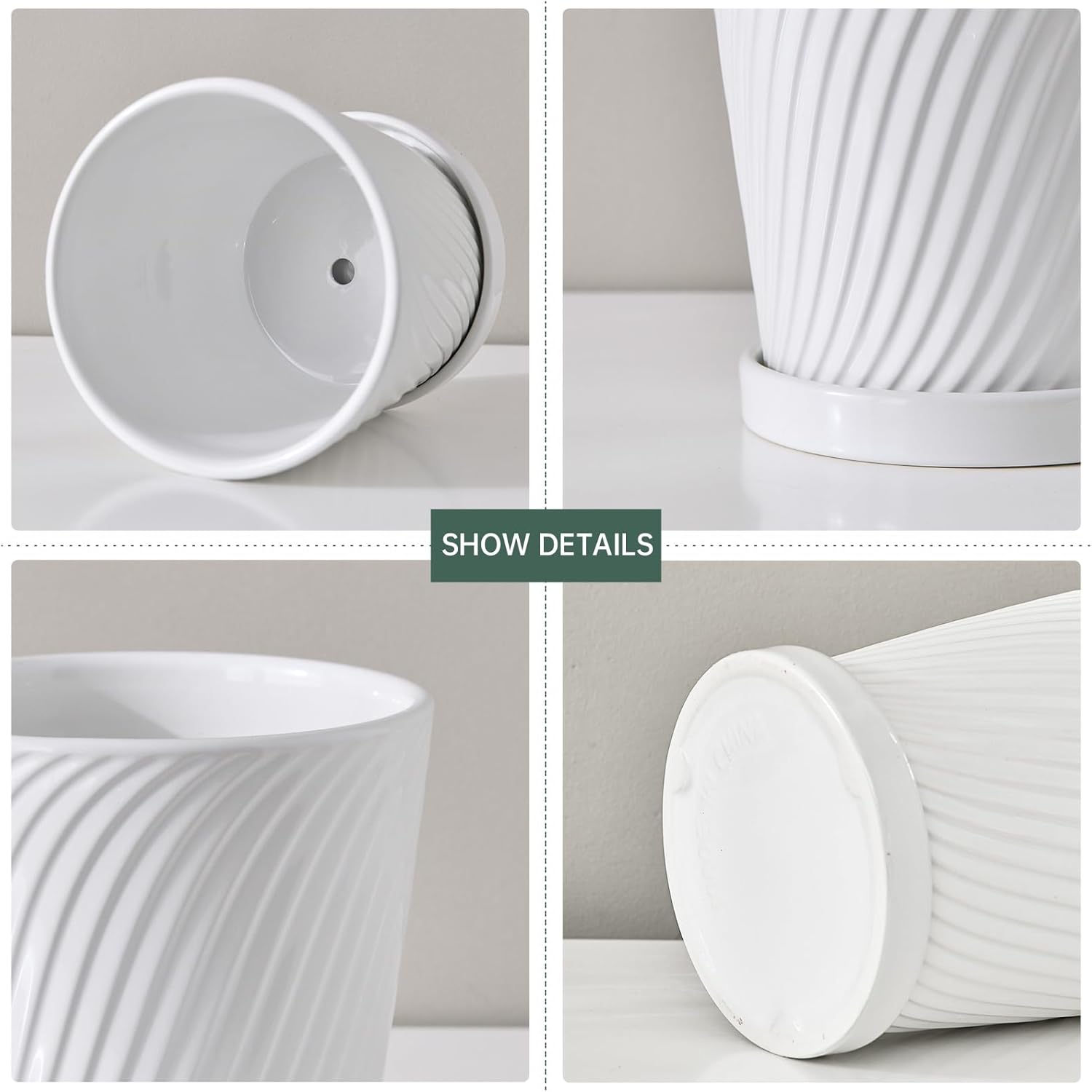 - [Drainage System]: Each ceramic flower pot has a drainage hole at the bottom with a saucer attached, which helps reduce water loss