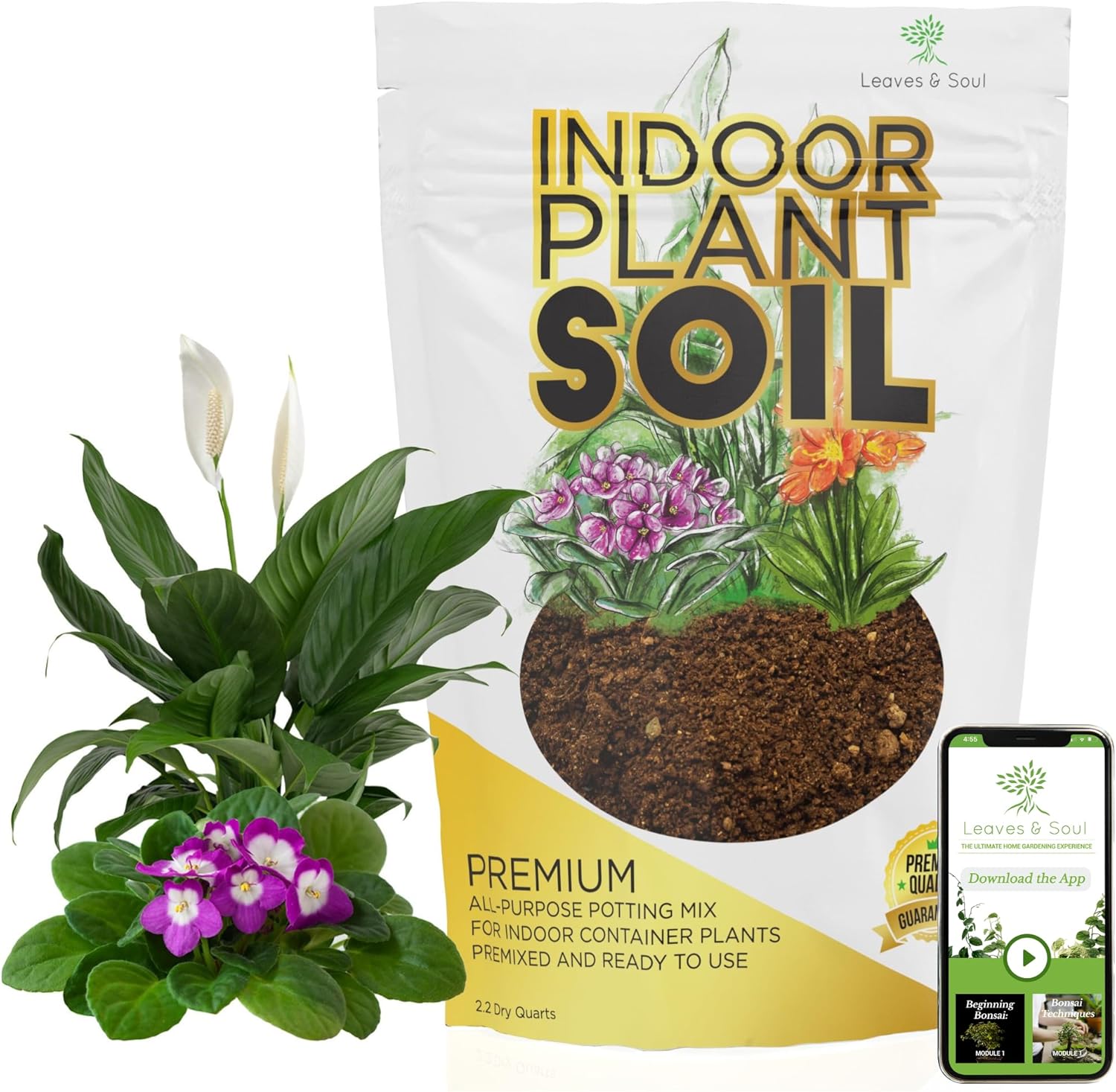 Indoor Plant Soil Premium All Purpose Blend | Large 2.2 Quarts | Ready to Use for Indoor Container and Houseplants | Peat, Coco Coir, Perlite, Dolomite | Made in USA