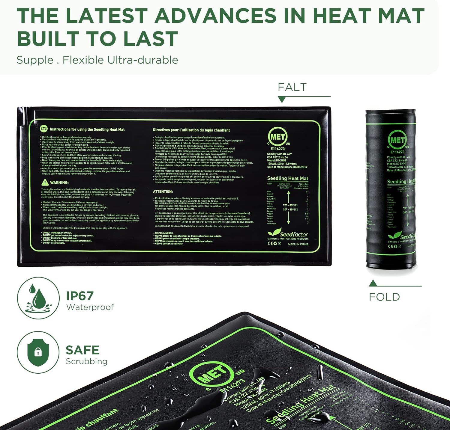 - MET CERTIFIED SEEDLING HEAT MAT: MET safety certified;Comply with UL 499;CSA C22.2 No.64