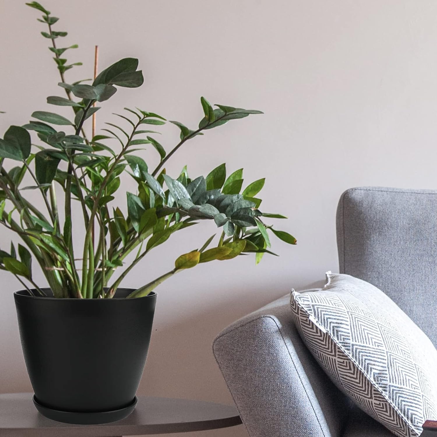 Plant Pots, 12 Pack 6 inch Modern Plastic Planters with Drainage Holes and Saucers for Indoor Outdoor Plants and Flowers, Black