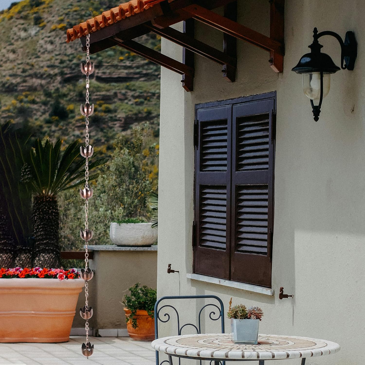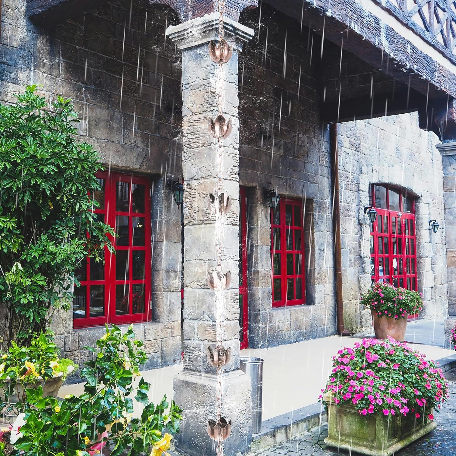- Rain Chains: Decorate Your House and Outdoor Garden with the Unique Rain Chain Replace Gutter Downspout & Divert Water Away from Home for Stunning Fountain Display, make gardens, courtyards, villas, etc., more beautiful. Add elegance to the house