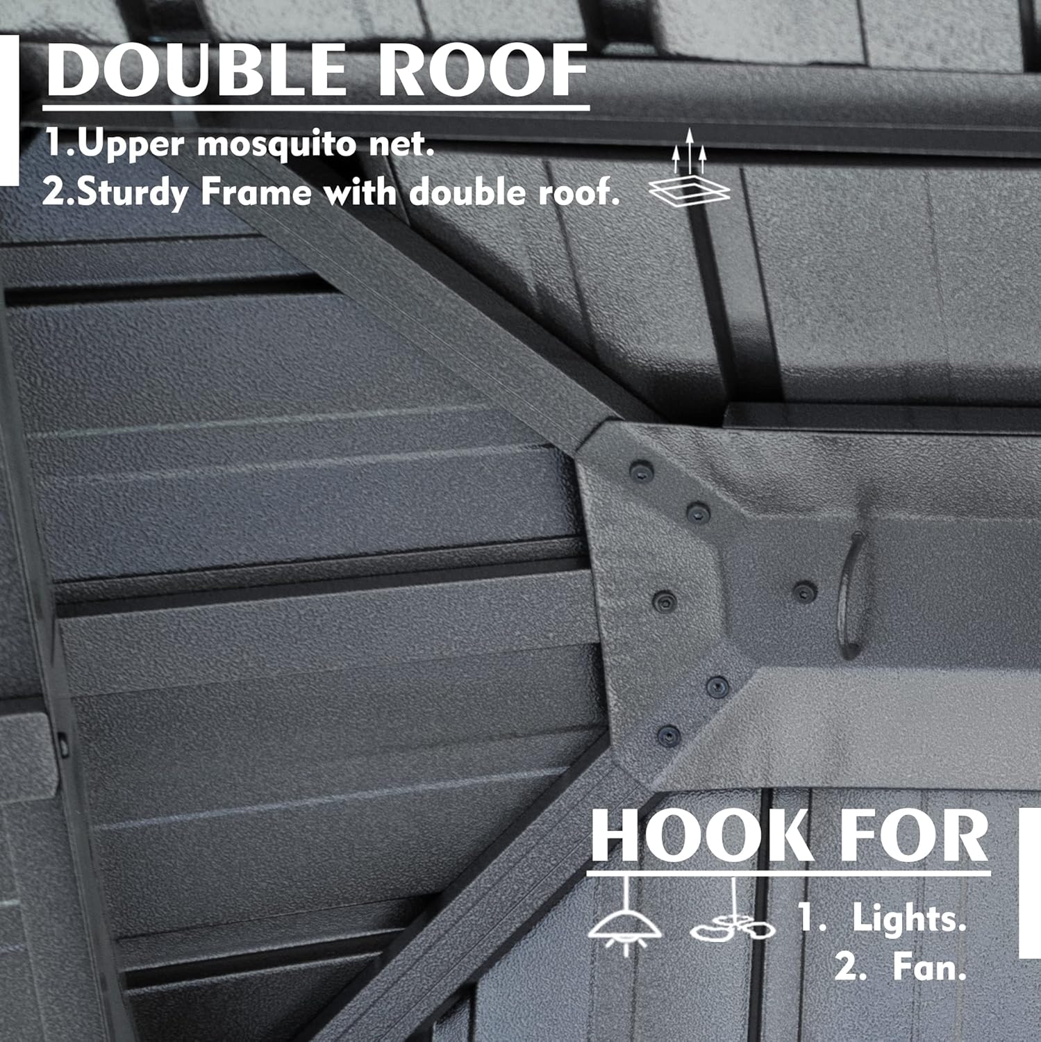 - âś…Double Roof Design- The innovative double-top design of the Alexander gazebo not only enhances its aesthetic appeal but also promotes optimal breathability and exceptional air circulation, creating a pleasant environment, helping withstand strong wind.