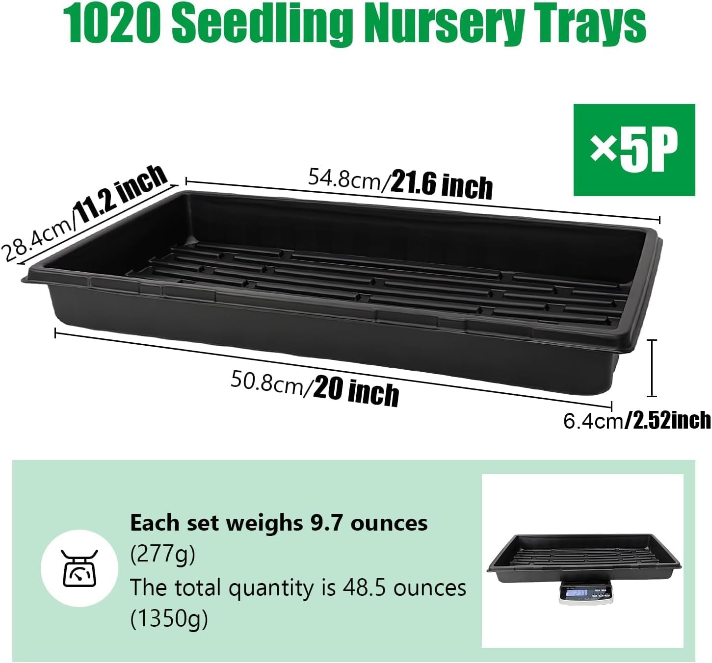 - 📦Package Contents: 5 Pieces per pack, holds standard 10*20 seedling plug trays. Notice: Newly produced items may have a slight odos.