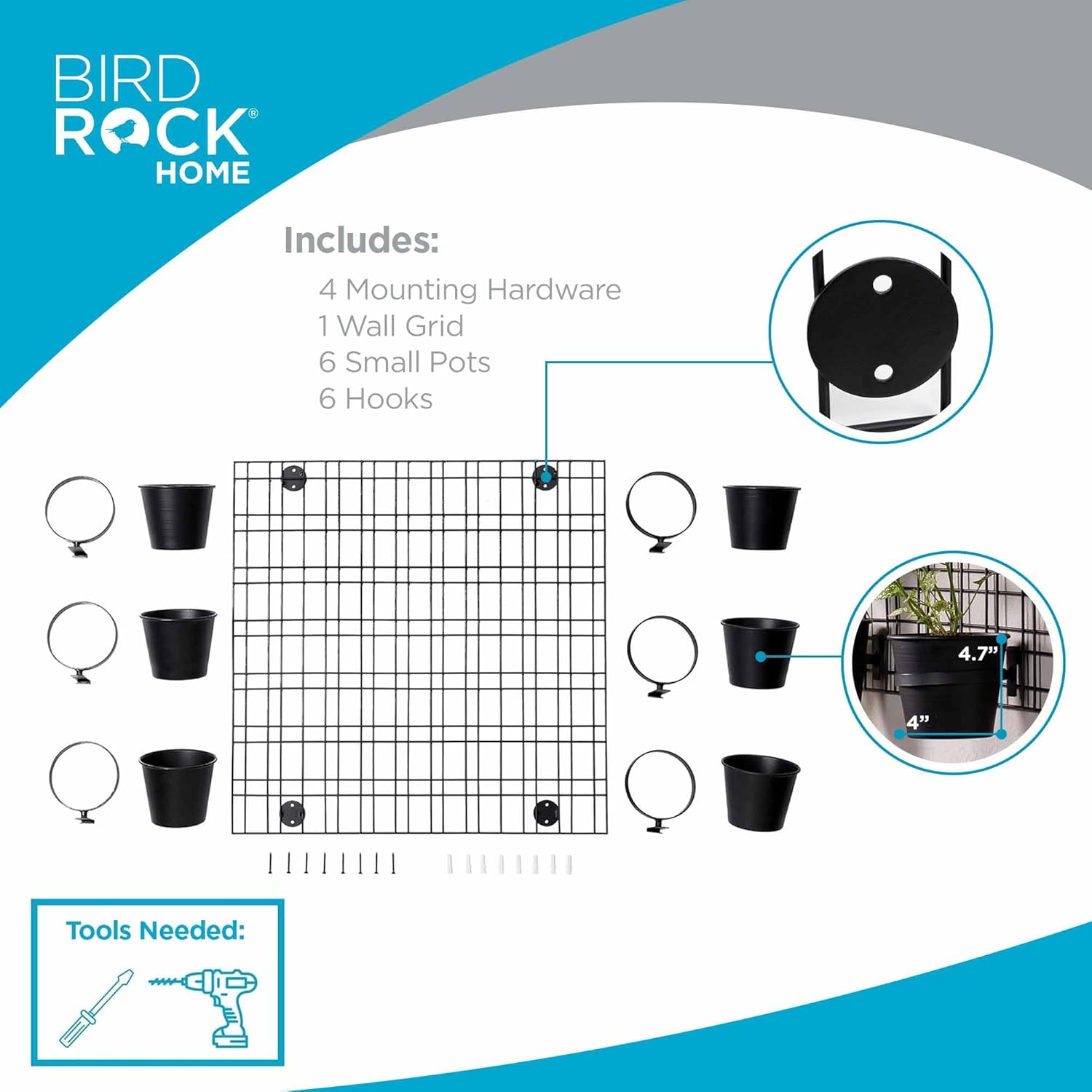 BIRDROCK HOME 6 Pot Garden Wall Grid - Flower or Succulent Planter Pots - Indoor or Outdoor Plant Organizer Rack - Black