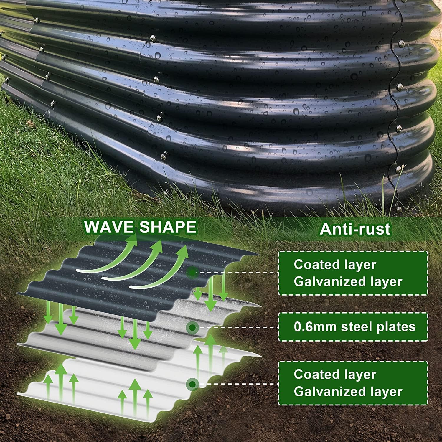 Olle Galvanized Raised Garden Bed Outdoor 32" Tall 12 in 1 Metal Raised Garden Planter Raised Bed for Growing Flowers Herbs Vegetables Bed Raised, Midnight Grey 32" Tall