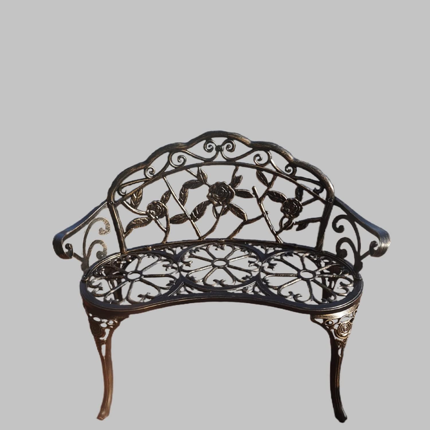 KAILI Garden Bench, Metal Aluminum Rose, Suitable for Garden Porch Park Front Porch Balcony Outdoor (Bronzed)