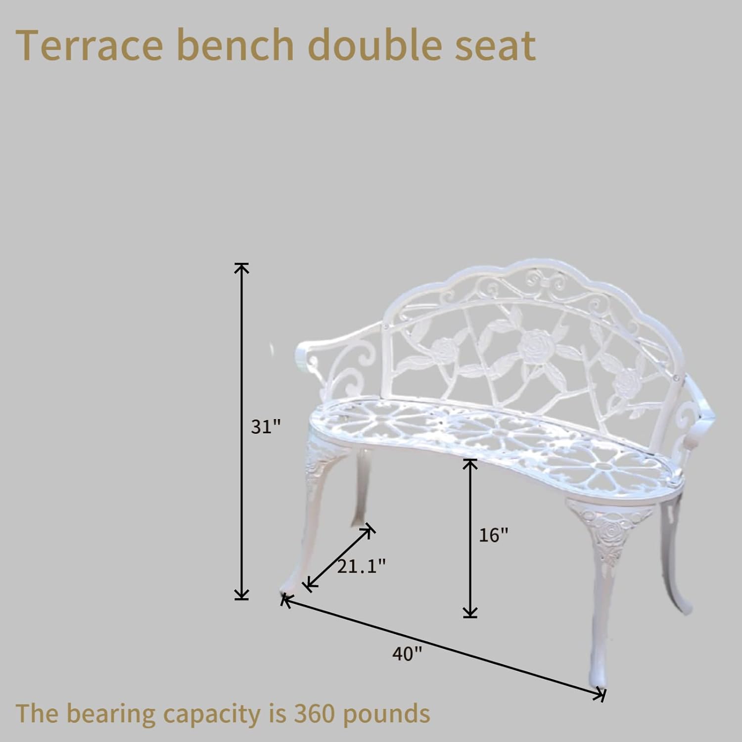 KAILI Garden Bench, Metal Aluminum Rose, Suitable for Garden Porch Park Front Porch Balcony Outdoor (White)