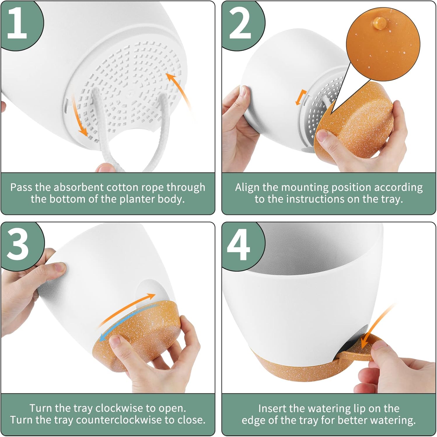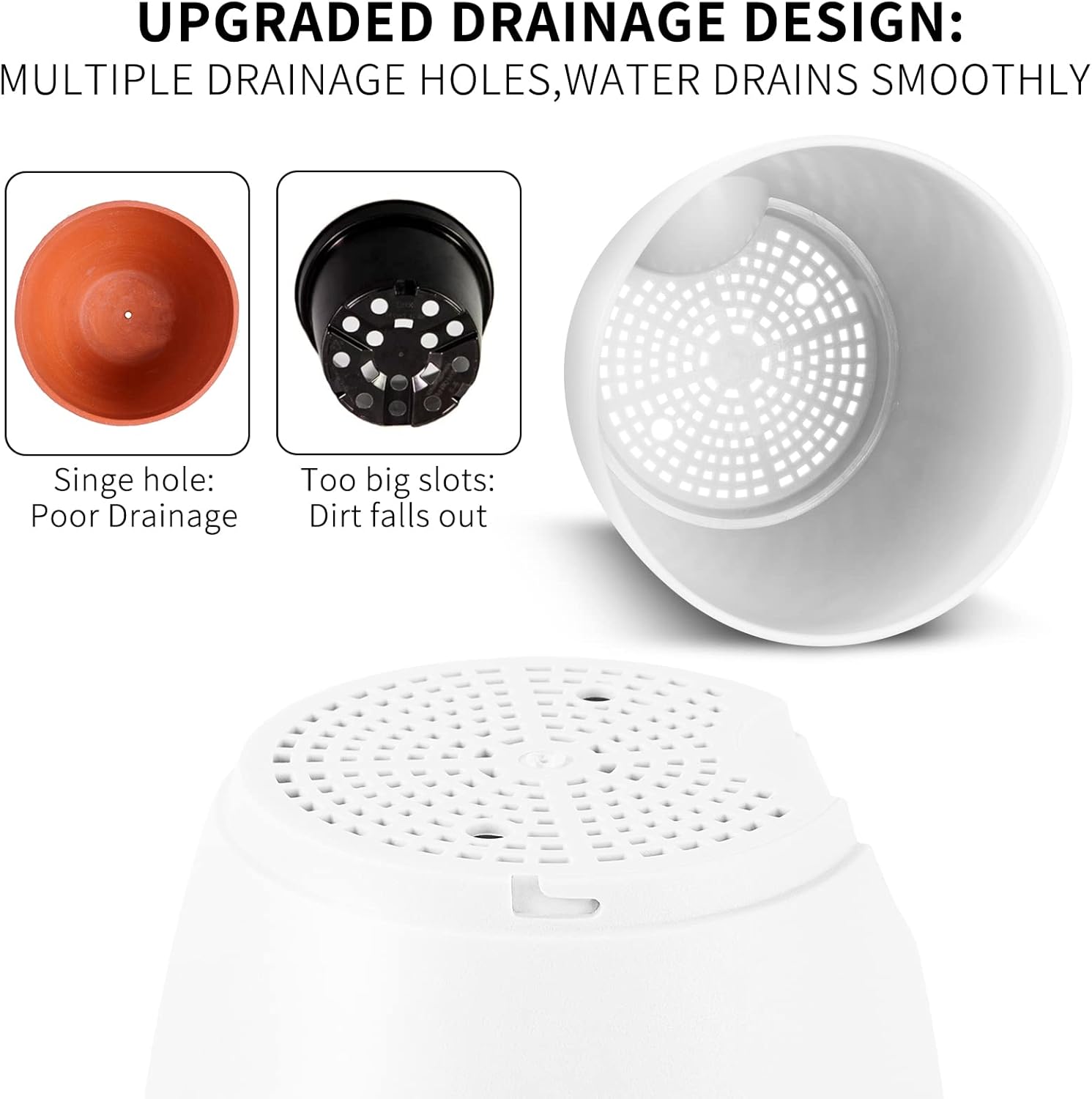 GARDIFE Plant Pots 7/6.5/6/5.5/5 Inch Self Watering Planters with Drainage Hole, Plastic Flower Pots, Nursery Planting Pot for All House Plants, Succulents,Snake Plant, African Violet, Flowers,White