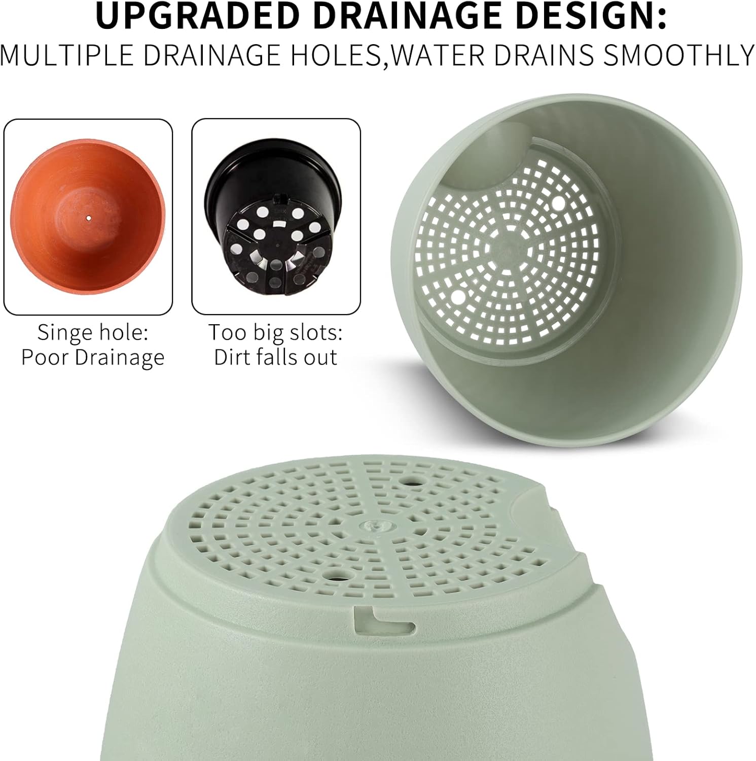 GARDIFE Plant Pots 7/6.5/6/5.5/5 Inch Self Watering Planters with Drainage Hole, Plastic Flower Pots, Planters for Indoor Plants, Succulents,Snake Plant, African Violet, Flowers,Green